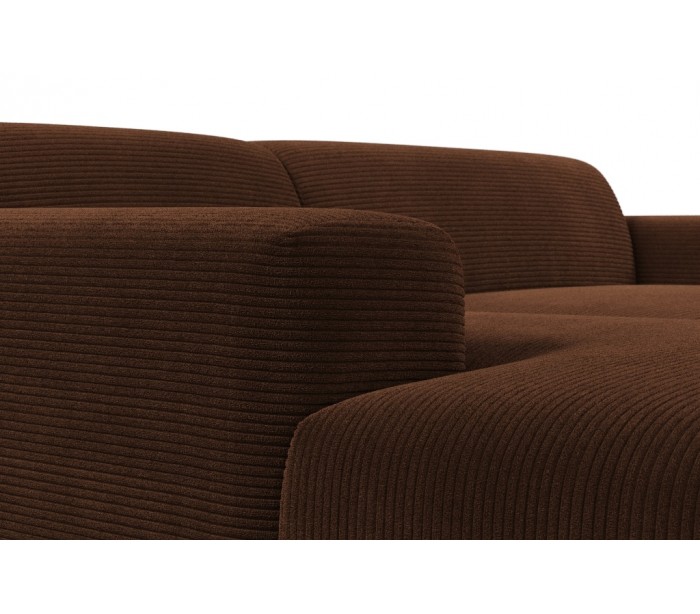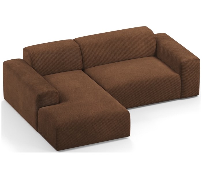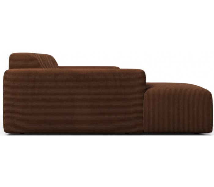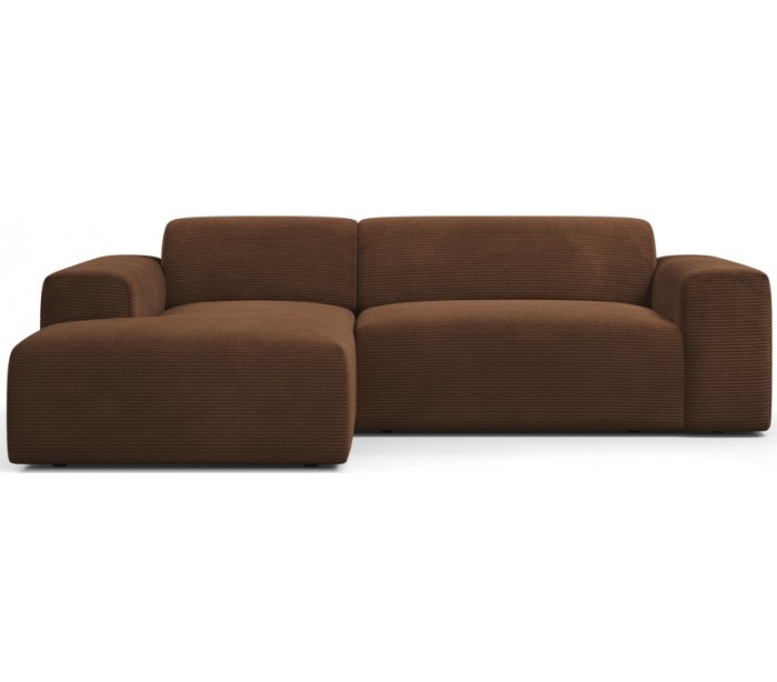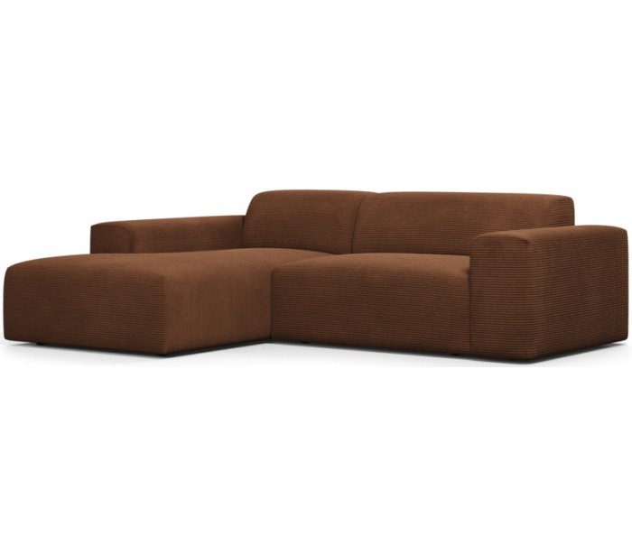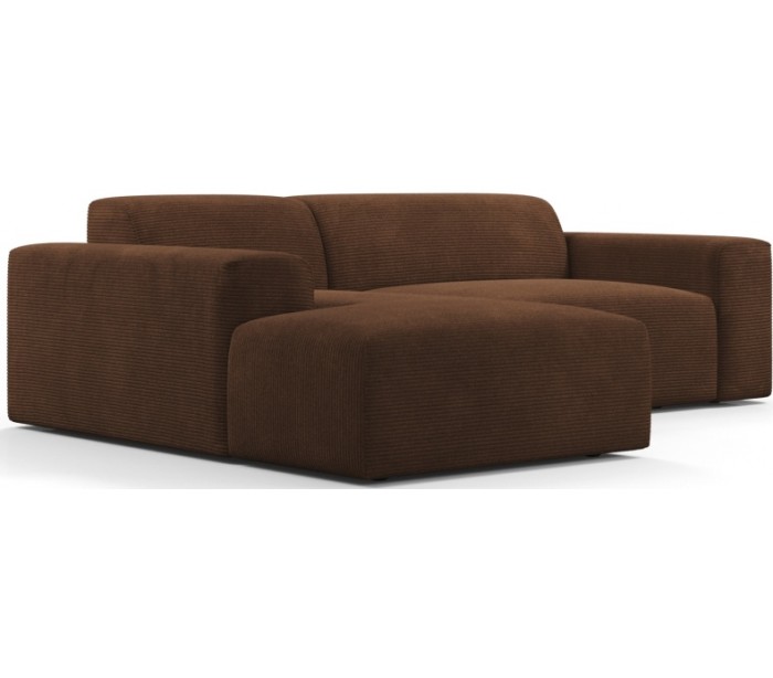 Moderne venstrevendt chaiselong sofa i et design fremstillet i brun corduroy. Sofaen måler 250 x 185 cm i bredde og dybde og 71 cm i højden over ryggen. Sofaen er polstret med højkvalitets skum. En lækker slængesofa med dyb siddestilling.