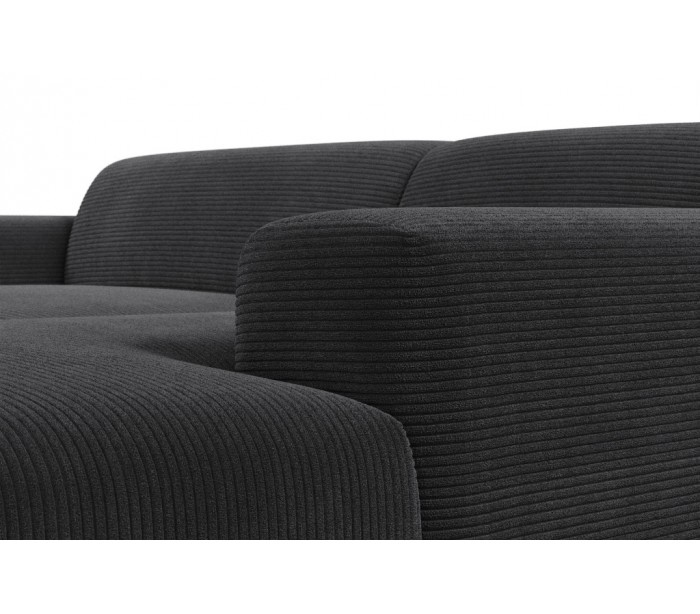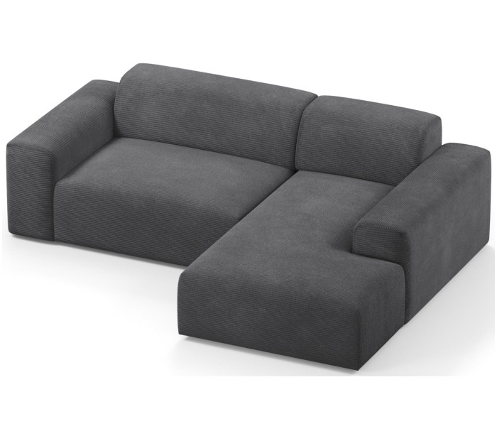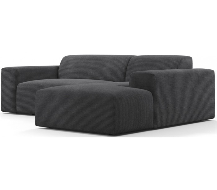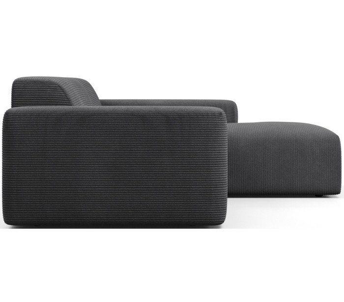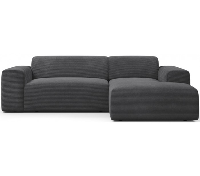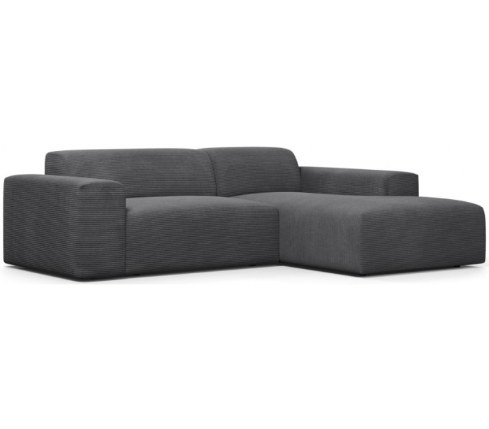 Moderne højrevendt chaiselong sofa i et design fremstillet i antracit corduroy. Sofaen måler 250 x 185 cm i bredde og dybde og 71 cm i højden over ryggen. Sofaen er polstret med højkvalitets skum. En lækker slængesofa med dyb siddestilling.
