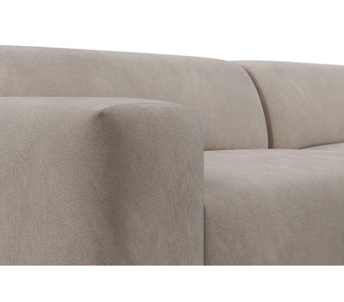 Moderne venstrevendt chaiselong sofa i et design fremstillet i taupe velour. Sofaen måler 260 x 250 cm i bredde og dybde og 71 cm i højden over ryggen. Sofaen er polstret med højkvalitets skum. En lækker slængesofa med dyb siddestilling.