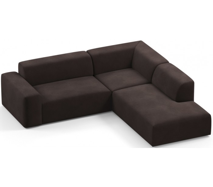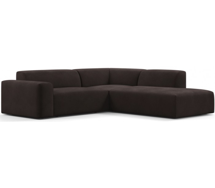 Moderne højrevendt chaiselong sofa i et design fremstillet i mørkebrun velour. Sofaen måler 260 x 250 cm i bredde og dybde og 71 cm i højden over ryggen. Sofaen er polstret med højkvalitets skum. En lækker slængesofa med dyb siddestilling.