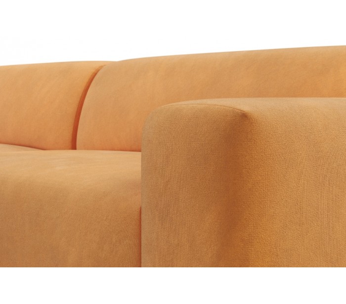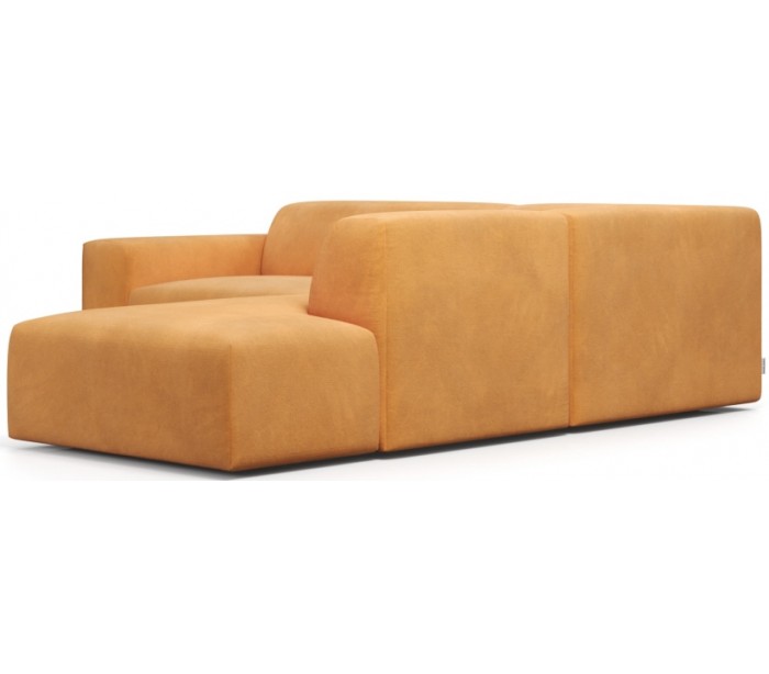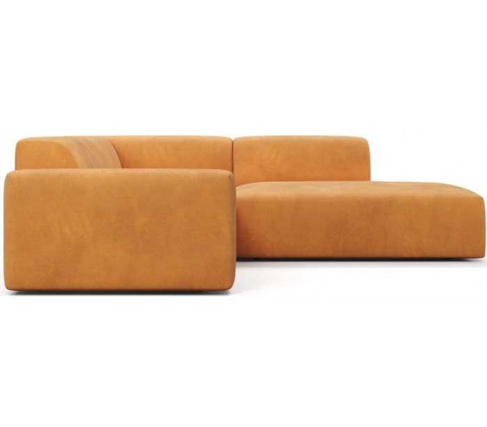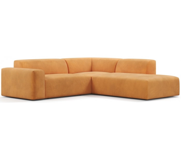 Moderne højrevendt chaiselong sofa i et design fremstillet i sennepsfarvet velour. Sofaen måler 260 x 250 cm i bredde og dybde og 71 cm i højden over ryggen. Sofaen er polstret med højkvalitets skum. En lækker slængesofa med dyb siddestilling.