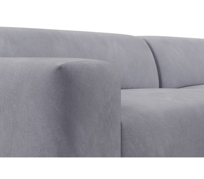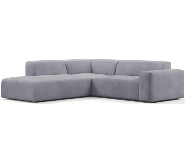 Moderne venstrevendt chaiselong sofa i et design fremstillet i lyseblå velour. Sofaen måler 260 x 250 cm i bredde og dybde og 71 cm i højden over ryggen. Sofaen er polstret med højkvalitets skum. En lækker slængesofa med dyb siddestilling.