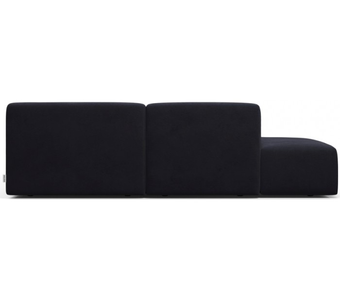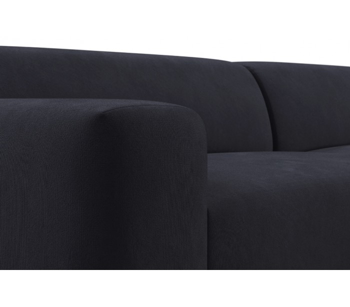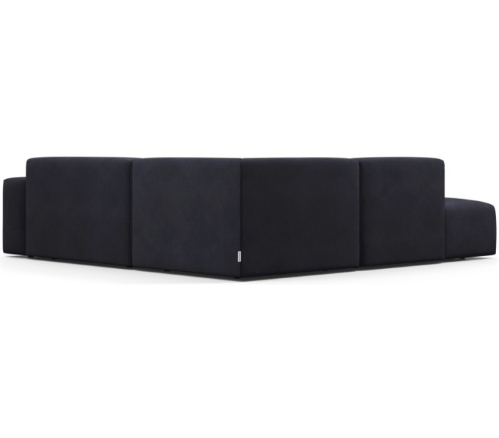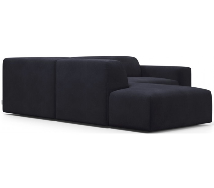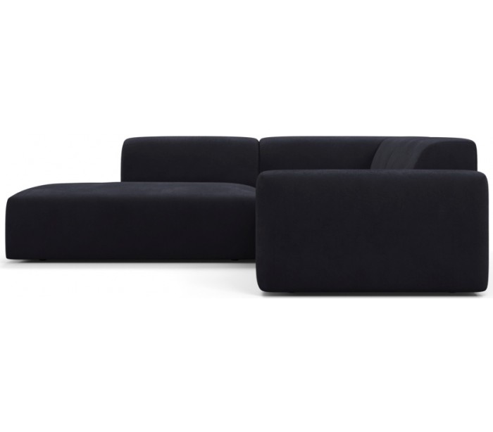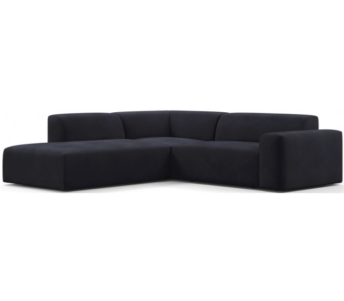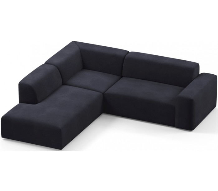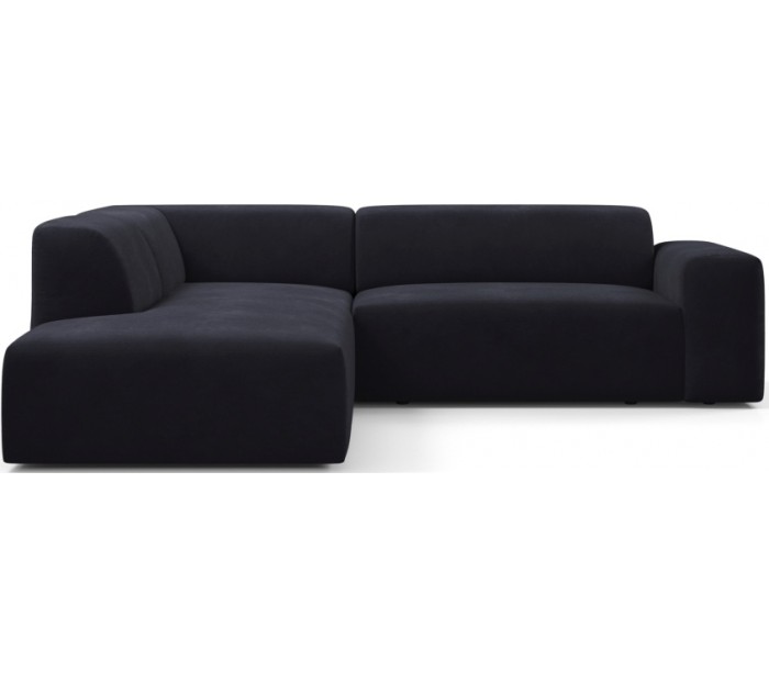 Moderne venstrevendt chaiselong sofa i et design fremstillet i navyblå velour. Sofaen måler 260 x 250 cm i bredde og dybde og 71 cm i højden over ryggen. Sofaen er polstret med højkvalitets skum. En lækker slængesofa med dyb siddestilling.