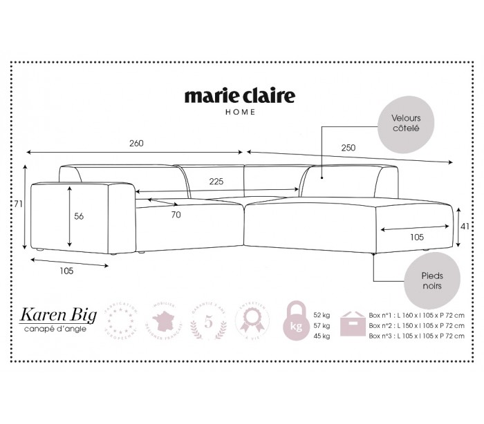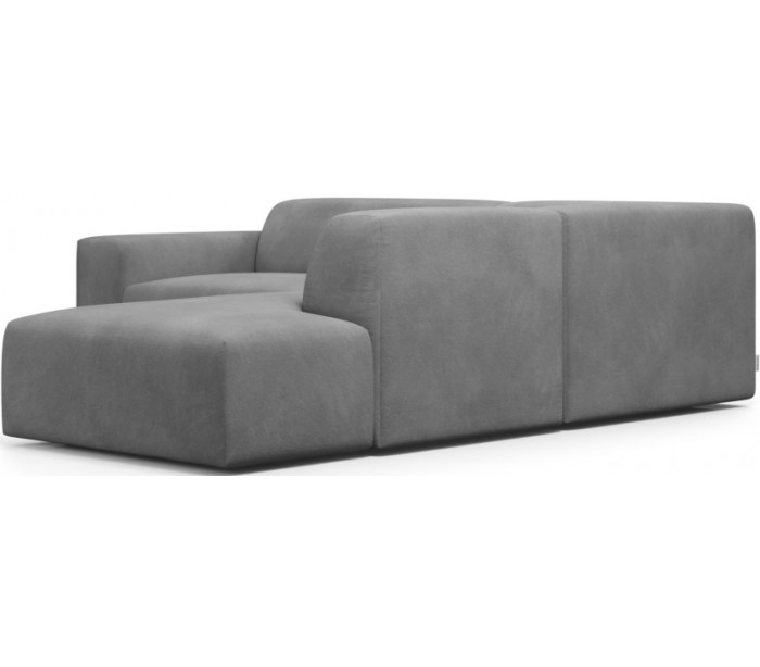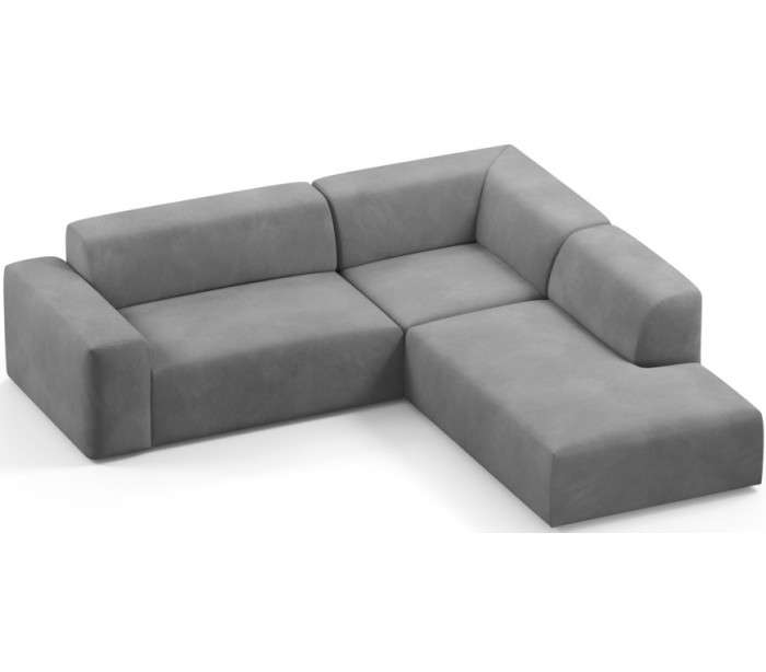 Moderne højrevendt chaiselong sofa i et design fremstillet i lysegrå velour. Sofaen måler 260 x 250 cm i bredde og dybde og 71 cm i højden over ryggen. Sofaen er polstret med højkvalitets skum. En lækker slængesofa med dyb siddestilling.