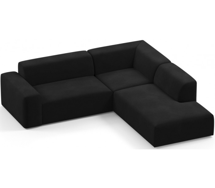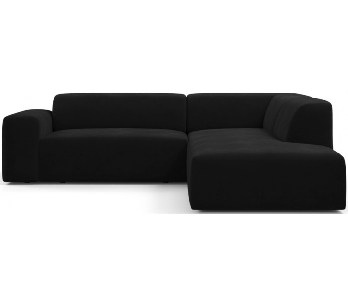 Moderne højrevendt chaiselong sofa i et design fremstillet i sort velour. Sofaen måler 260 x 250 cm i bredde og dybde og 71 cm i højden over ryggen. Sofaen er polstret med højkvalitets skum. En lækker slængesofa med dyb siddestilling.