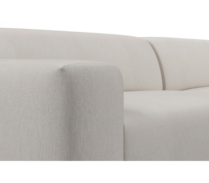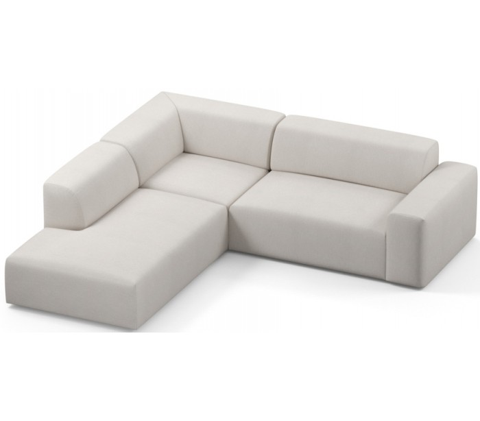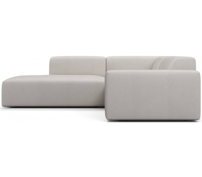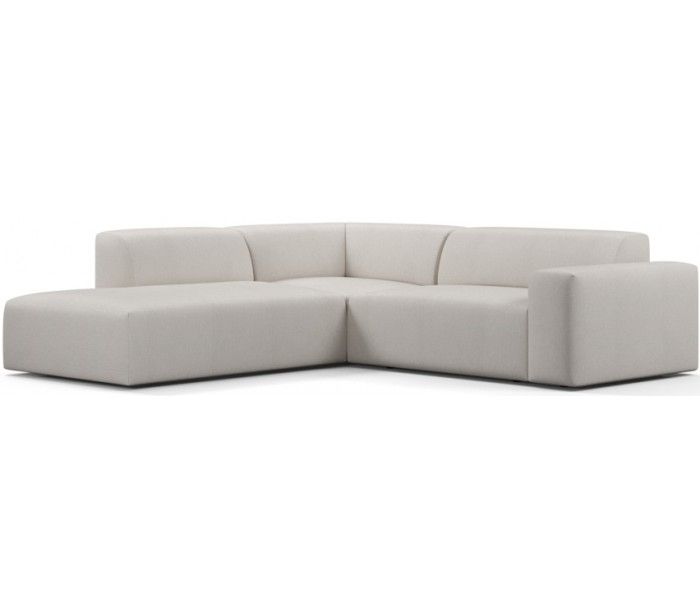 Moderne venstrevendt chaiselong sofa i et design fremstillet i creme polyester. Sofaen måler 260 x 250 cm i bredde og dybde og 71 cm i højden over ryggen. Sofaen er polstret med højkvalitets skum. En lækker slængesofa med dyb siddestilling.