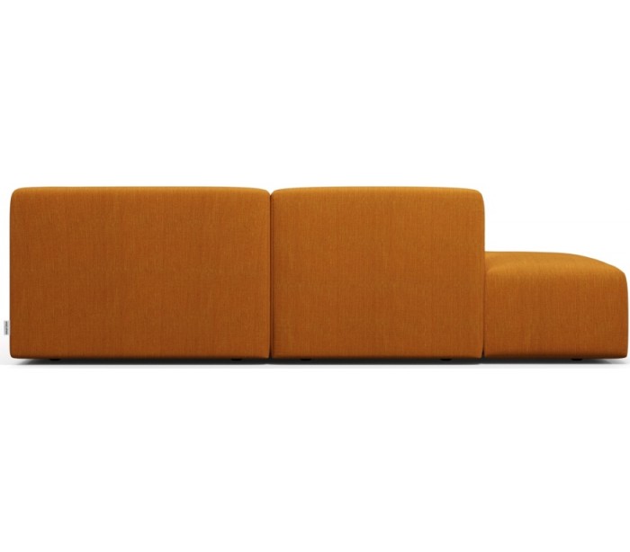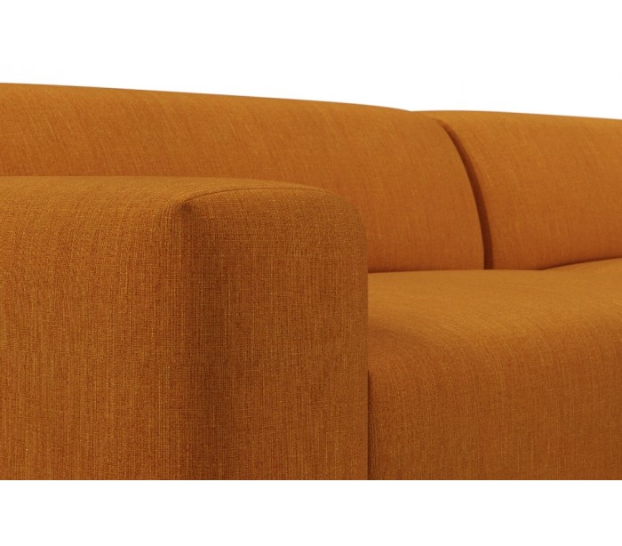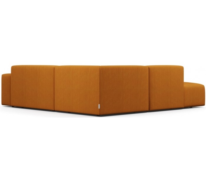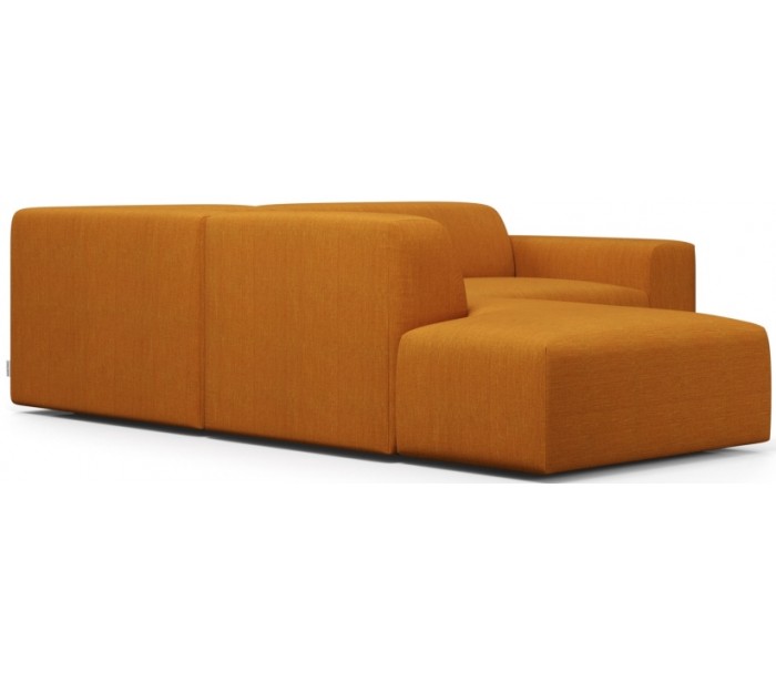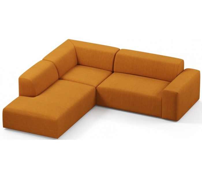 Moderne venstrevendt chaiselong sofa i et design fremstillet i sennepsfarvet polyester. Sofaen måler 260 x 250 cm i bredde og dybde og 71 cm i højden over ryggen. Sofaen er polstret med højkvalitets skum. En lækker slængesofa med dyb siddestilling.