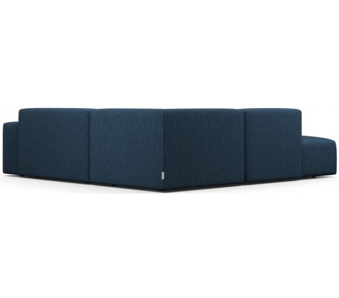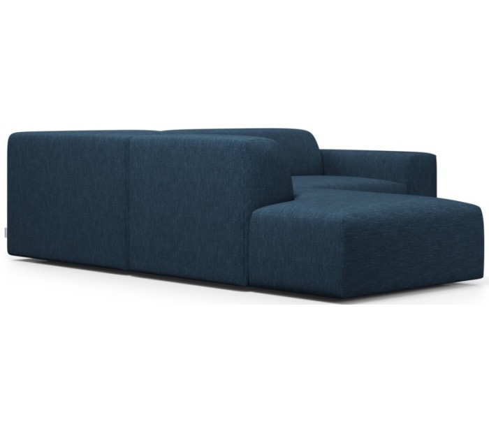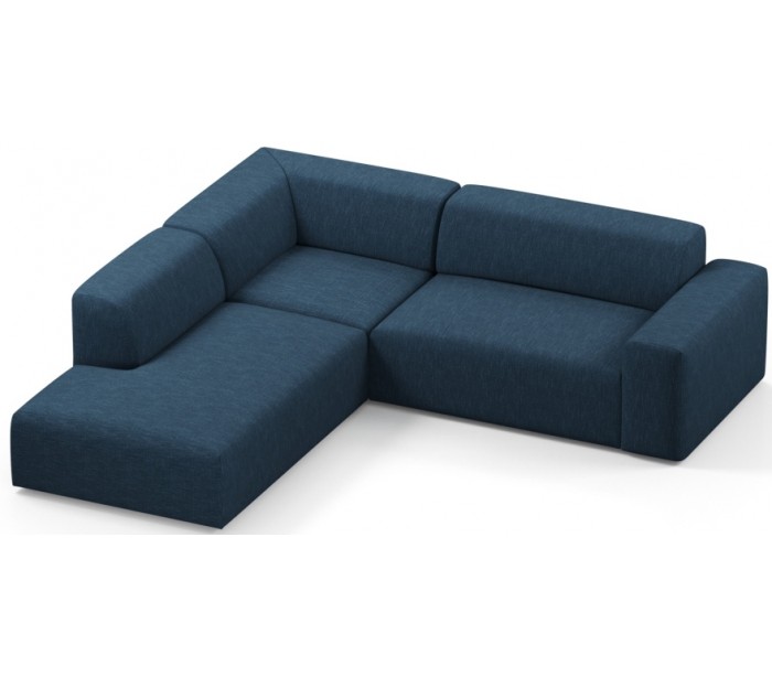 Moderne venstrevendt chaiselong sofa i et design fremstillet i blå polyester. Sofaen måler 260 x 250 cm i bredde og dybde og 71 cm i højden over ryggen. Sofaen er polstret med højkvalitets skum. En lækker slængesofa med dyb siddestilling.