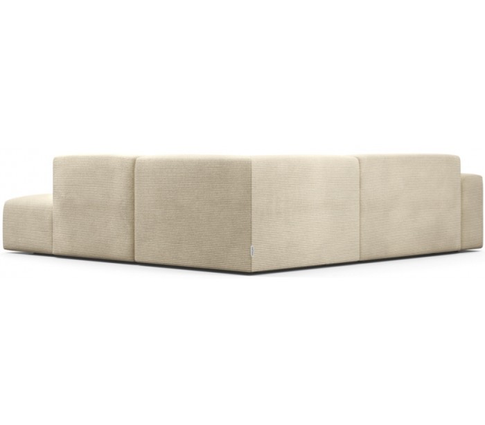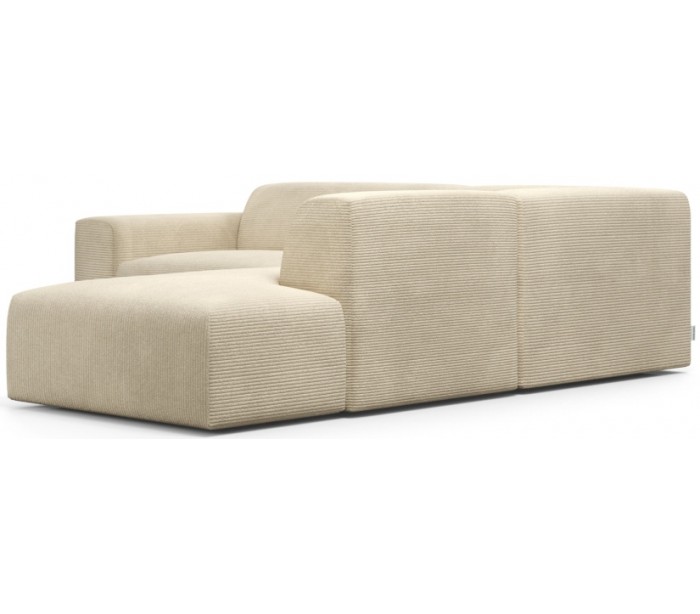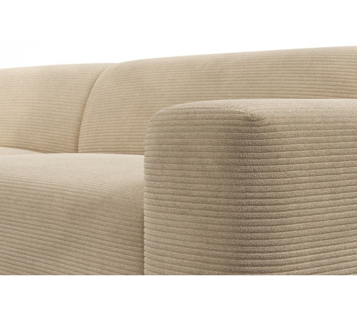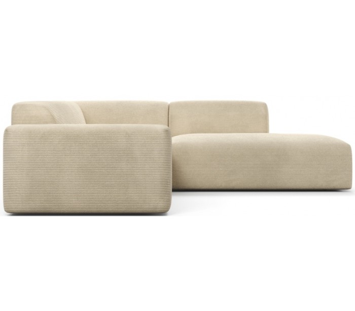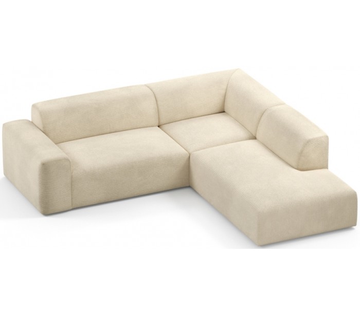 Moderne højrevendt chaiselong sofa i et design fremstillet i creme corduroy. Sofaen måler 260 x 250 cm i bredde og dybde og 71 cm i højden over ryggen. Sofaen er polstret med højkvalitets skum. En lækker slængesofa med dyb siddestilling.