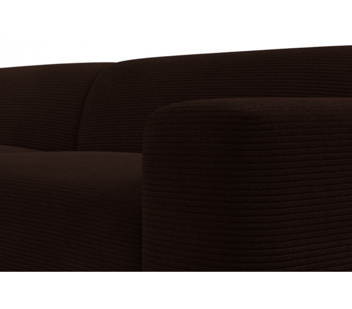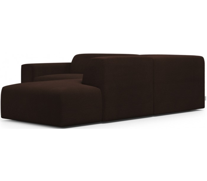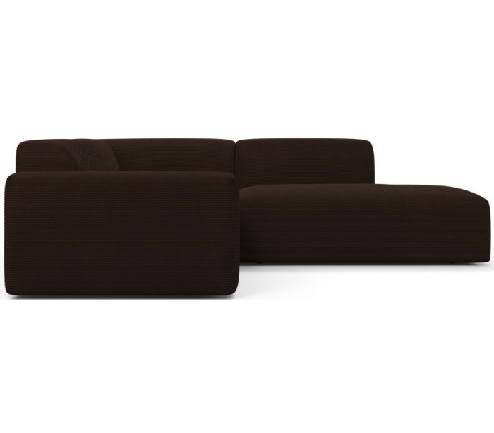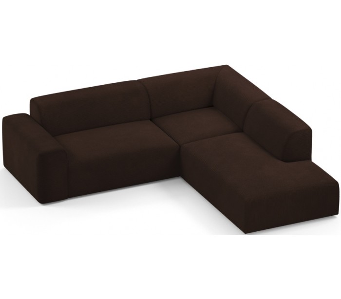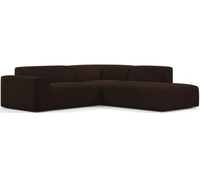 Moderne højrevendt chaiselong sofa i et design fremstillet i mørkebrun corduroy. Sofaen måler 260 x 250 cm i bredde og dybde og 71 cm i højden over ryggen. Sofaen er polstret med højkvalitets skum. En lækker slængesofa med dyb siddestilling.