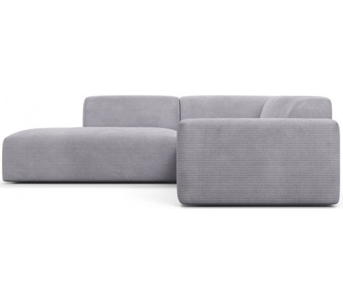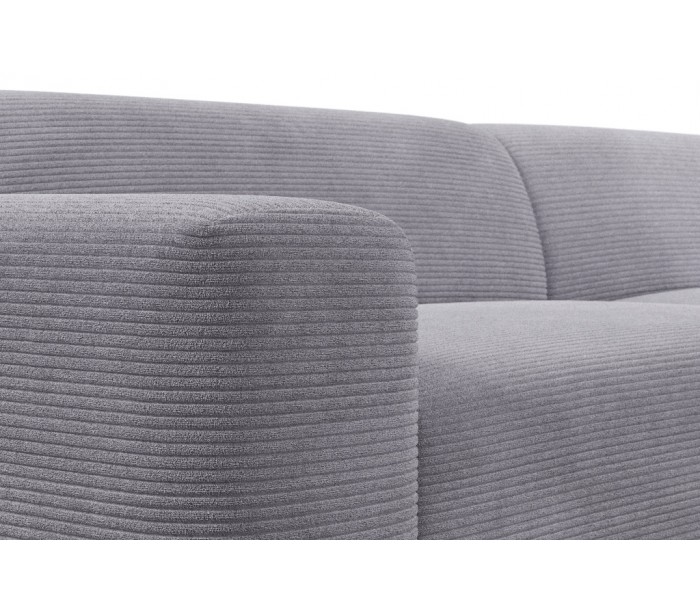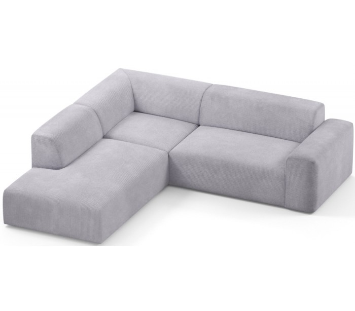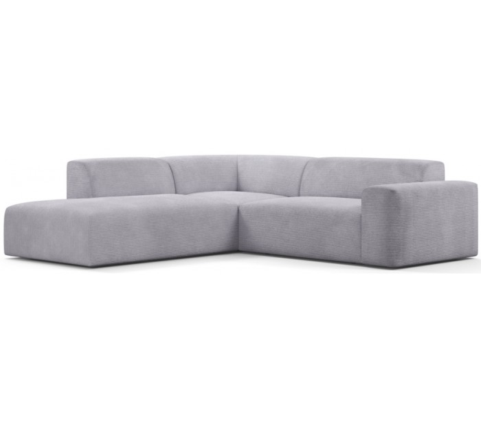Moderne venstrevendt chaiselong sofa i et design fremstillet i grå corduroy. Sofaen måler 260 x 250 cm i bredde og dybde og 71 cm i højden over ryggen. Sofaen er polstret med højkvalitets skum. En lækker slængesofa med dyb siddestilling.