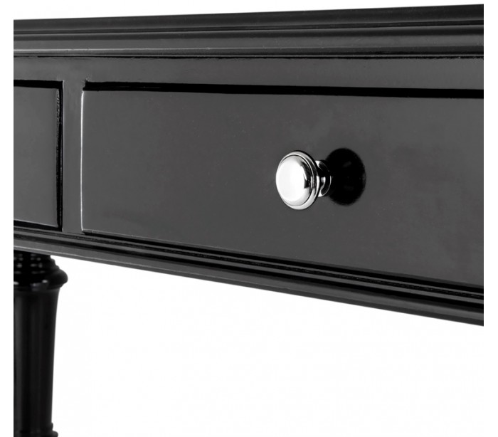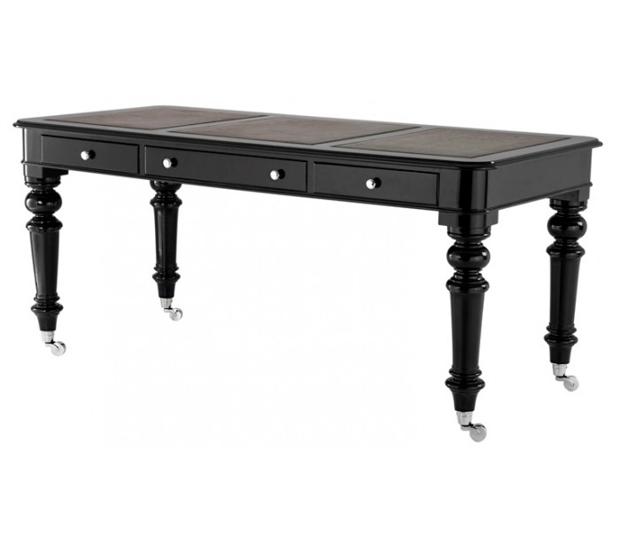 Eichholtz Buckingham skrivebord i et moderne udført design af sortvokset mahognitræ og mdf. På bordpladen findes 3 monterede læderunderlag. Skrivebordet måler 77 cm i højden og 175 x 80 cm i bredde og dybde.