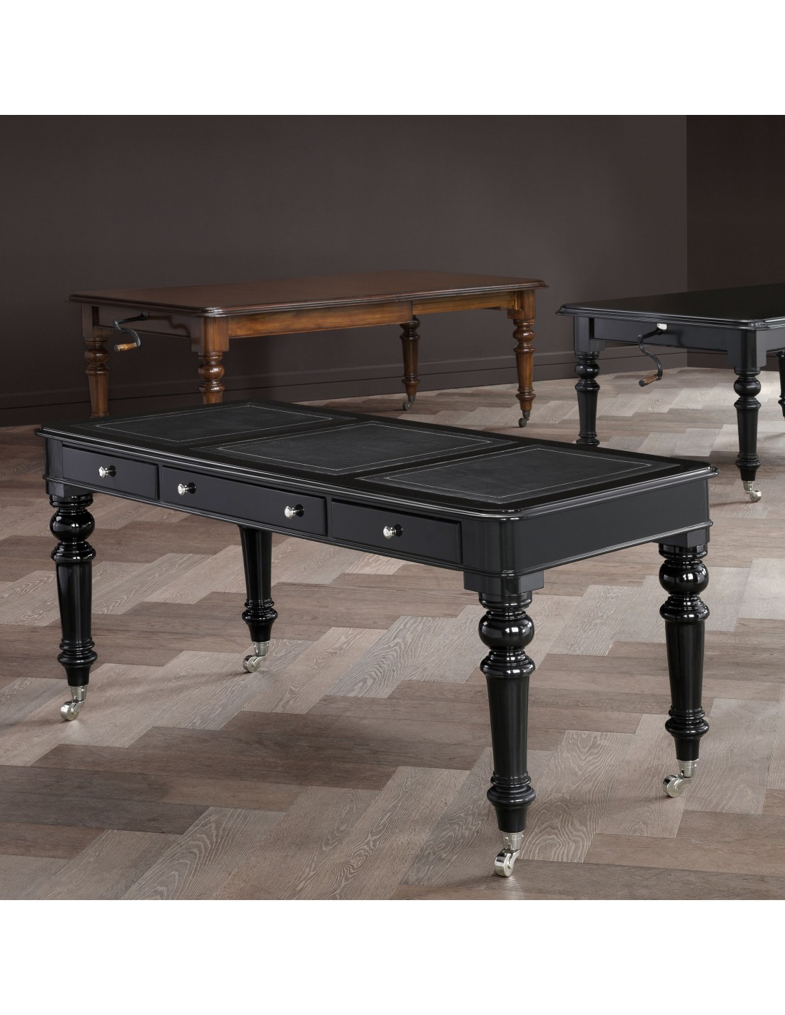 Buckingham skrivebord i mahognitræ og læder 175 x 80 cm - Sort