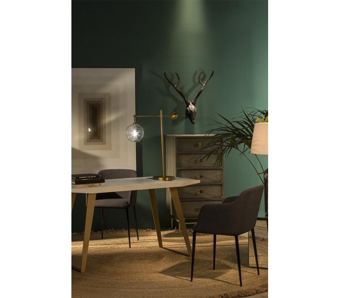 Skrivebord i metal og træ 140 x 60 cm - Antik hvid/Antik guld