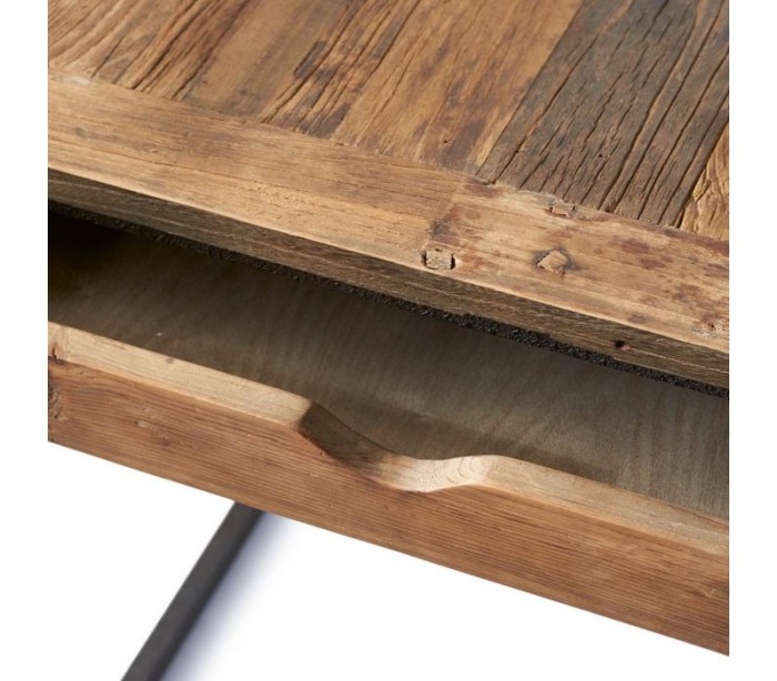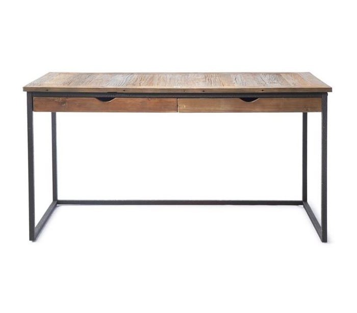 Skrivebord fra Riviera Maison, udført i et rustikt design af massiv genanvendt elmetræ og industrielt sortlakeret jern. Skrivebordet kommer med 2 skuffer og måler 80 cm i højden og 150 cm i bredde og 70 cm i dybde.