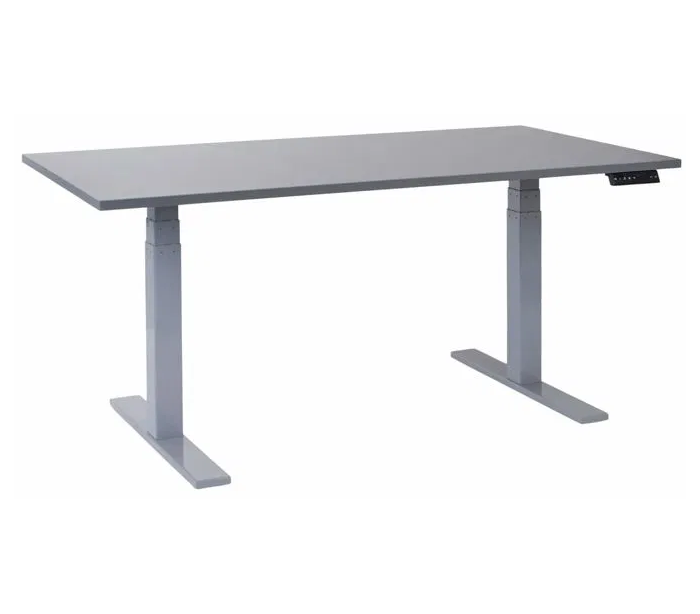 EP 6000 Hæve sænke skrivebord, udført i et design med alulakeret stel og bordplade i antracit laminat. Skrivebordet måler 65 - 130 cm i højden og 180 x 90 cm i bredde og dybde. Bordet justeres via 2-knaps el-betjening med memory funktion.