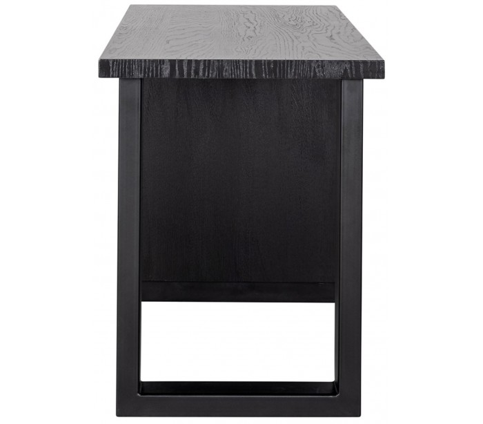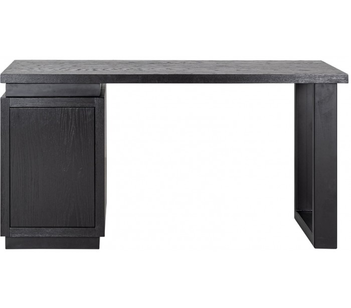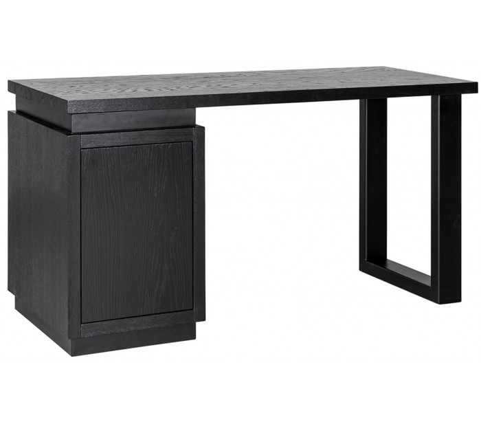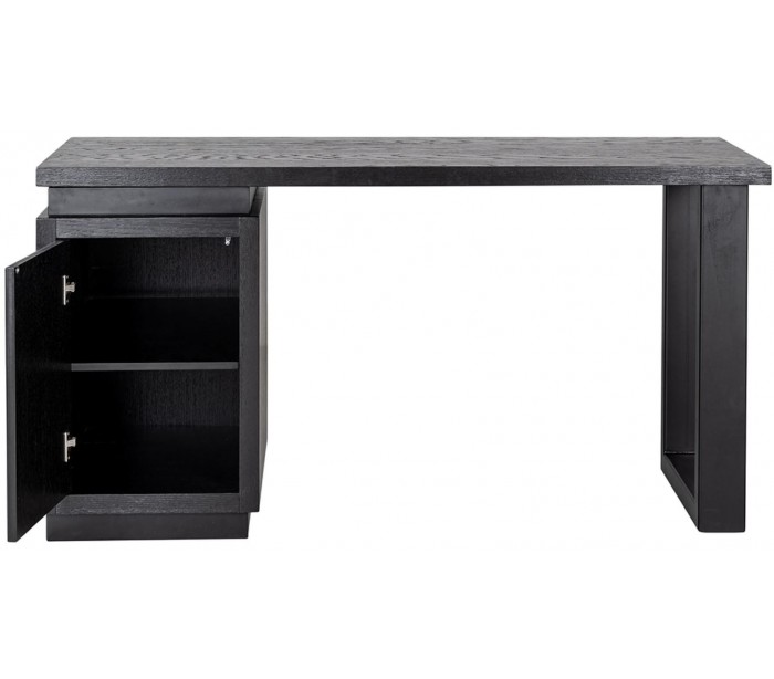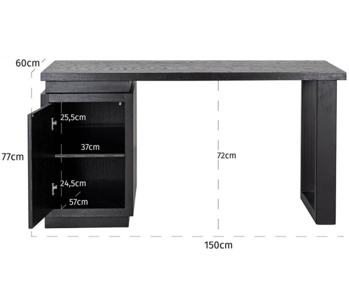 Skrivebord i et design fra hollandske Richmond Interiors. Bordet er fremstillet i sort egetræsfinér og jern. Skrivebordet måler 150 x 60 cm i bredde og dybde og 77 cm i højden. Skrivebordet indeholder et skab med 2 hylderum.