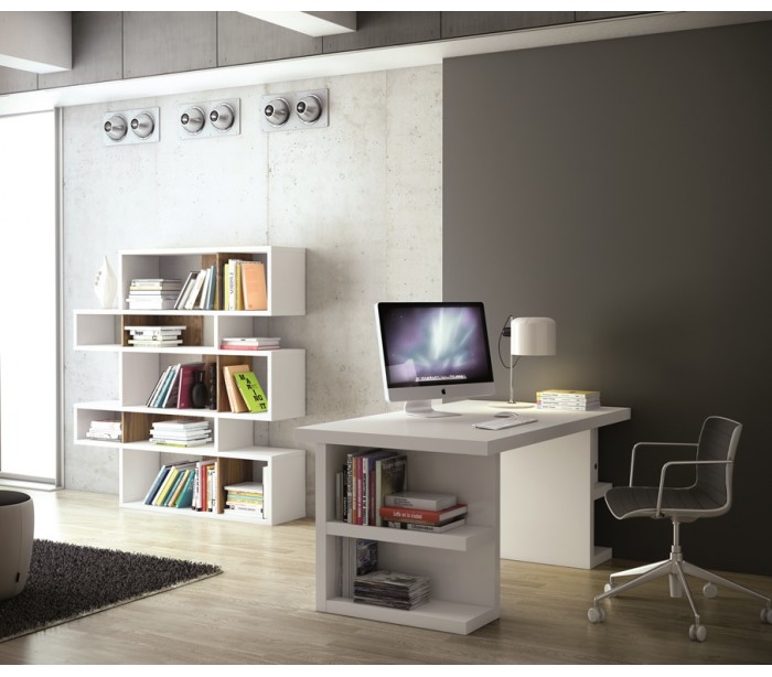 TemaHome Multi skrivebord udført i et design af mat hvidfolieret spånplade. Skrivebordet måler 75 cm i højden og 180 x 90 cm i bredde og dybde. Højde fra gulv til skrivebordspladen er 70 cm.