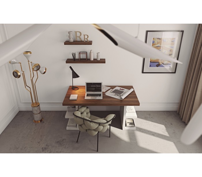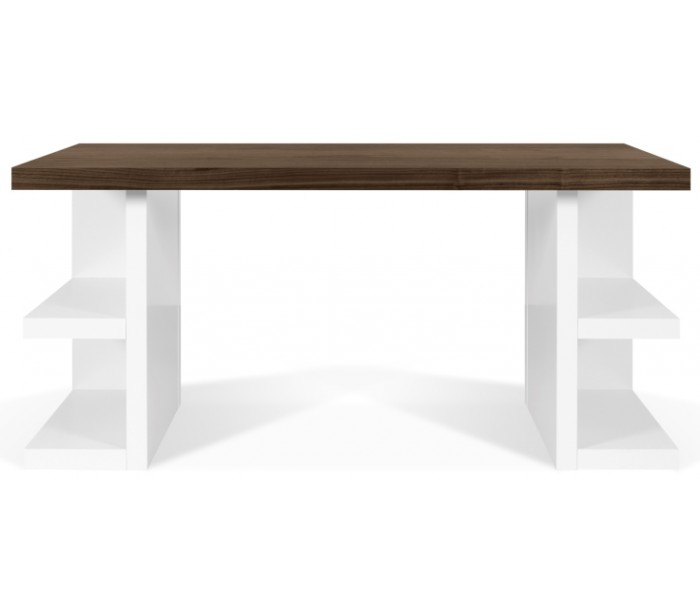 TemaHome Multi skrivebord udført i et design af mat hvid og valnøddefolieret spånplade. Skrivebordet måler 75 cm i højden og 160 x 90 cm i bredde og dybde. Højde fra gulv til skrivebordspladen er 70 cm.
