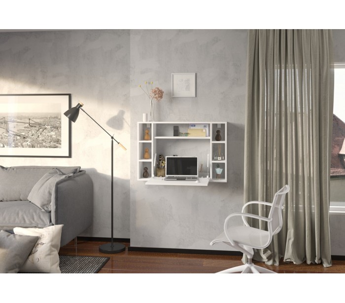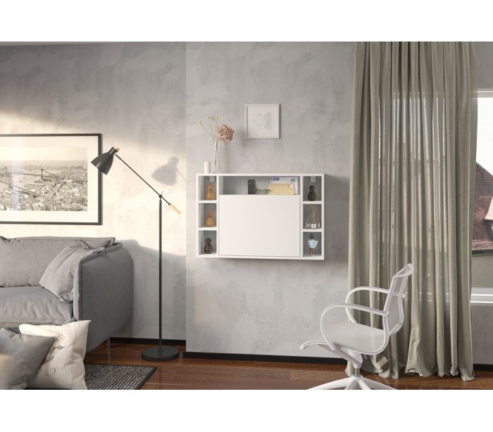 Muse væghængt skrivebord, udført i et design af hvid møbelplade. Skrivebordet måler 62 cm i højden og 94 cm i bredden.