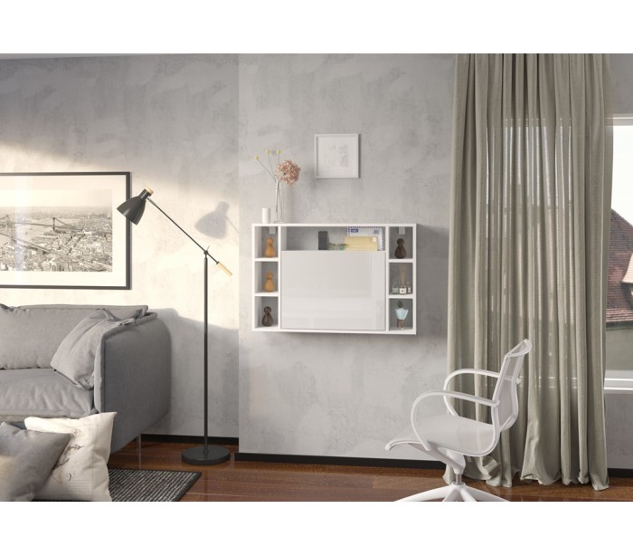 Muse væghængt skrivebord, udført i et design af hvid højglans møbelplade. Skrivebordet måler 62 cm i højden og 94 cm i bredden.