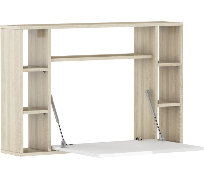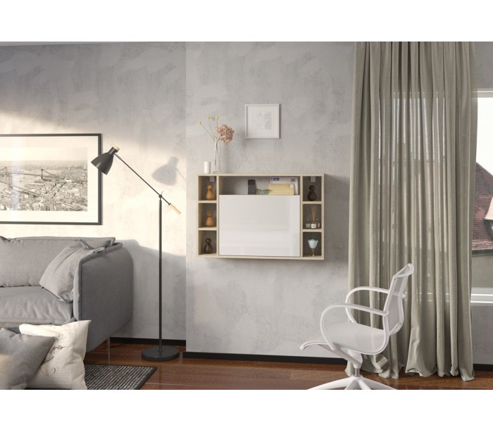 Muse væghængt skrivebord, udført i et design af sonoma egetræs- og hvid højglans møbelplade. Skrivebordet måler 62 cm i højden og 94 cm i bredden.