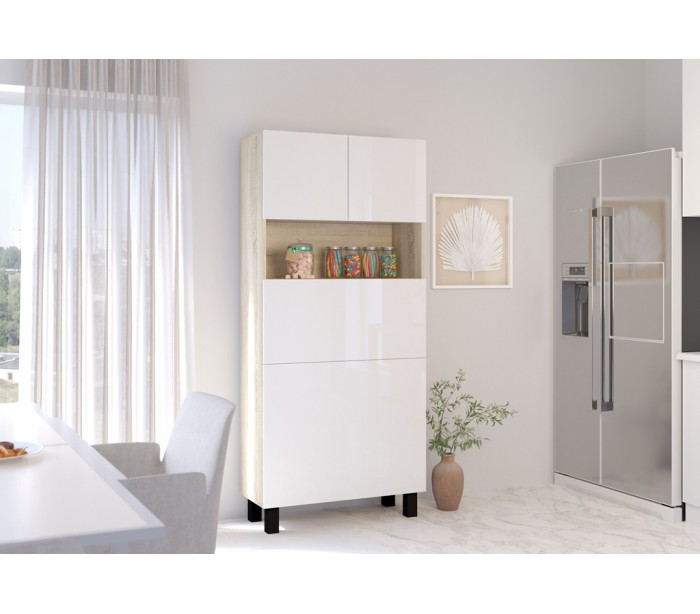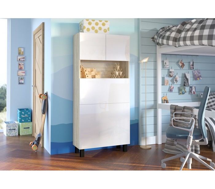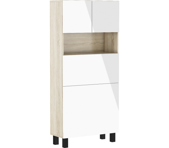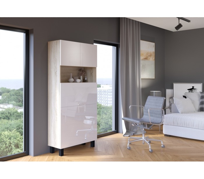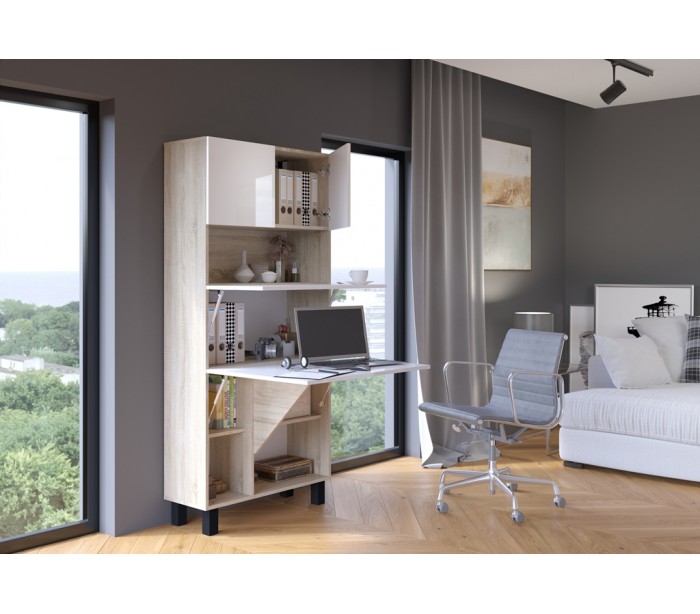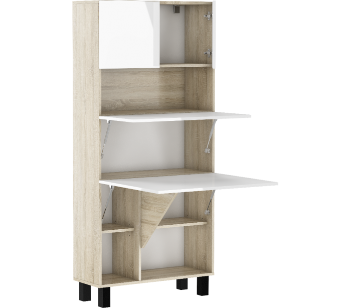 Homi skrivebordsskab udført i et design af sonoma egetræsfarvet og hvid højglans møbelplade. Skrivebordet måler 175 cm i højden og 80 cm i bredden.