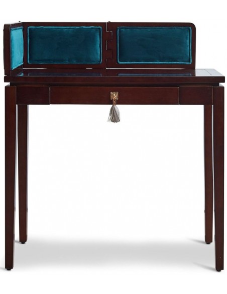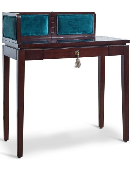 Skrivepult fra Authentic Models. Skrivepulten er udført i et design i vintage mørkebrun lakeret mahognitræ og grøn velour med detaljer i messinglakeret metal. Pulten måler 85 cm i bredden.