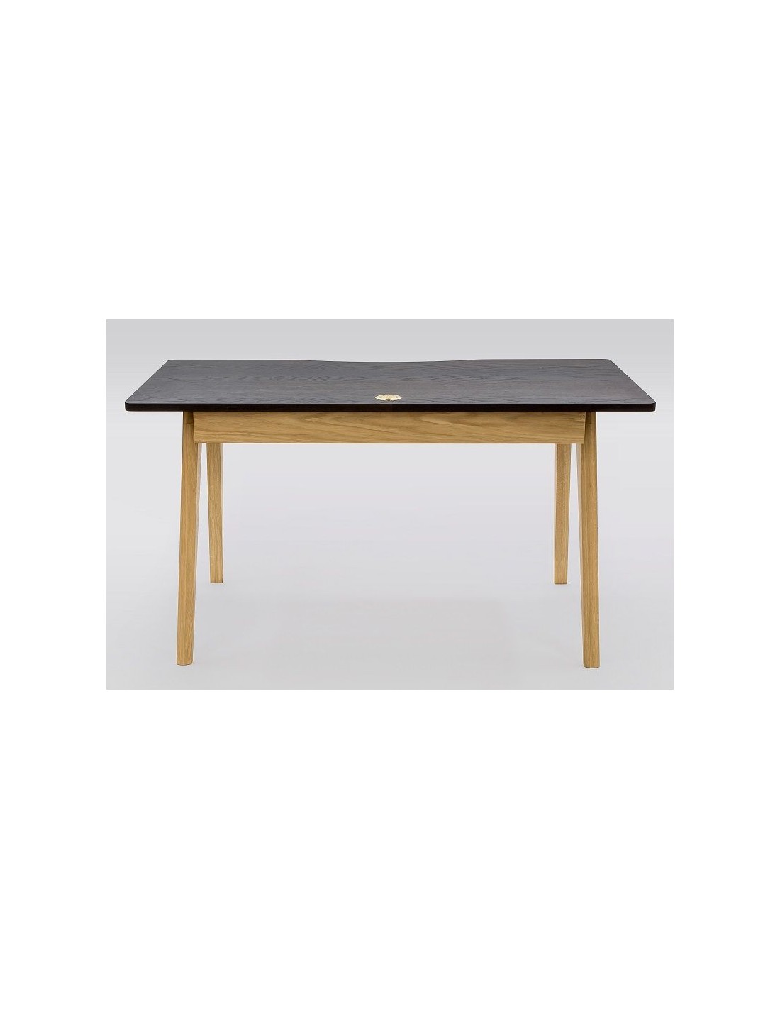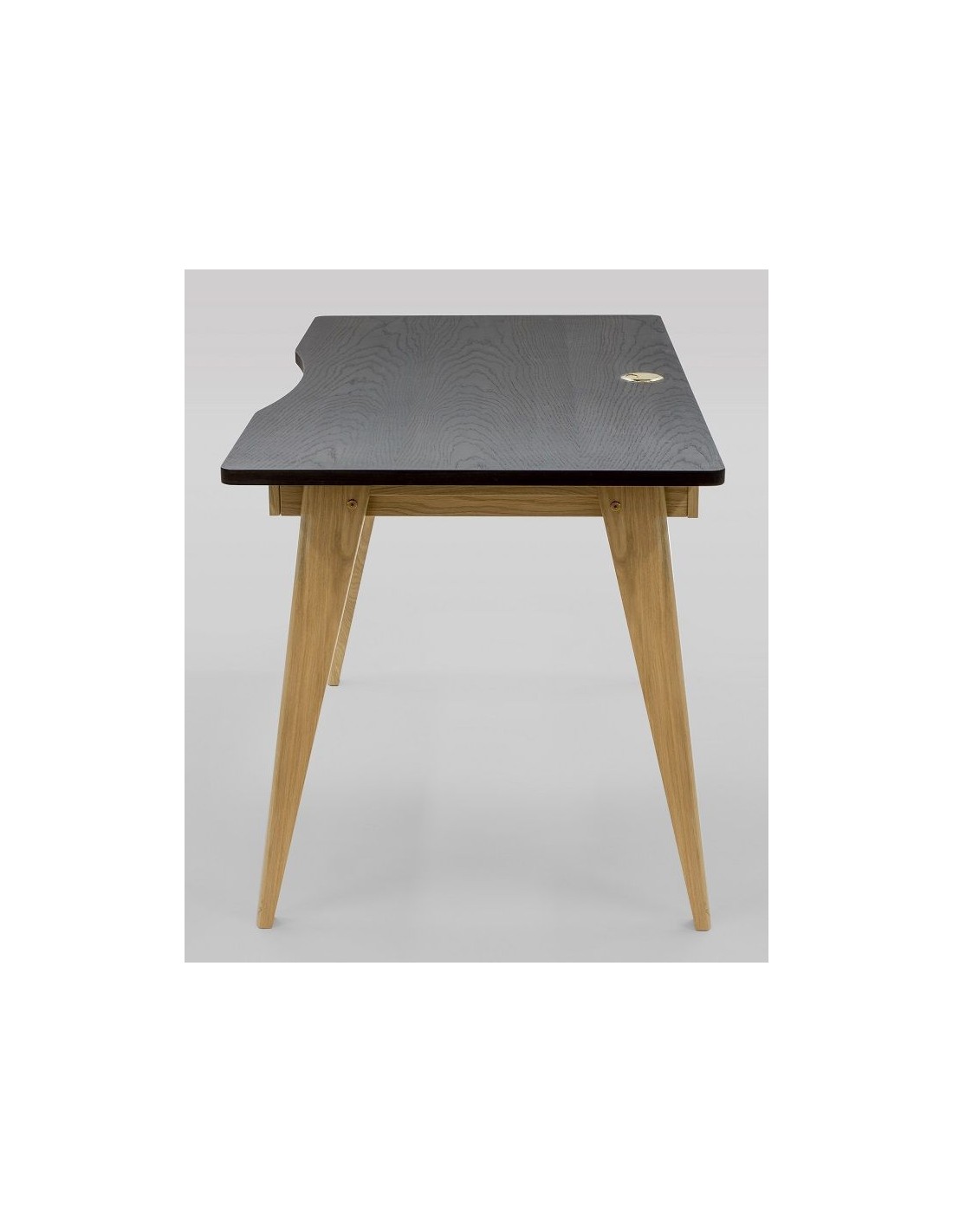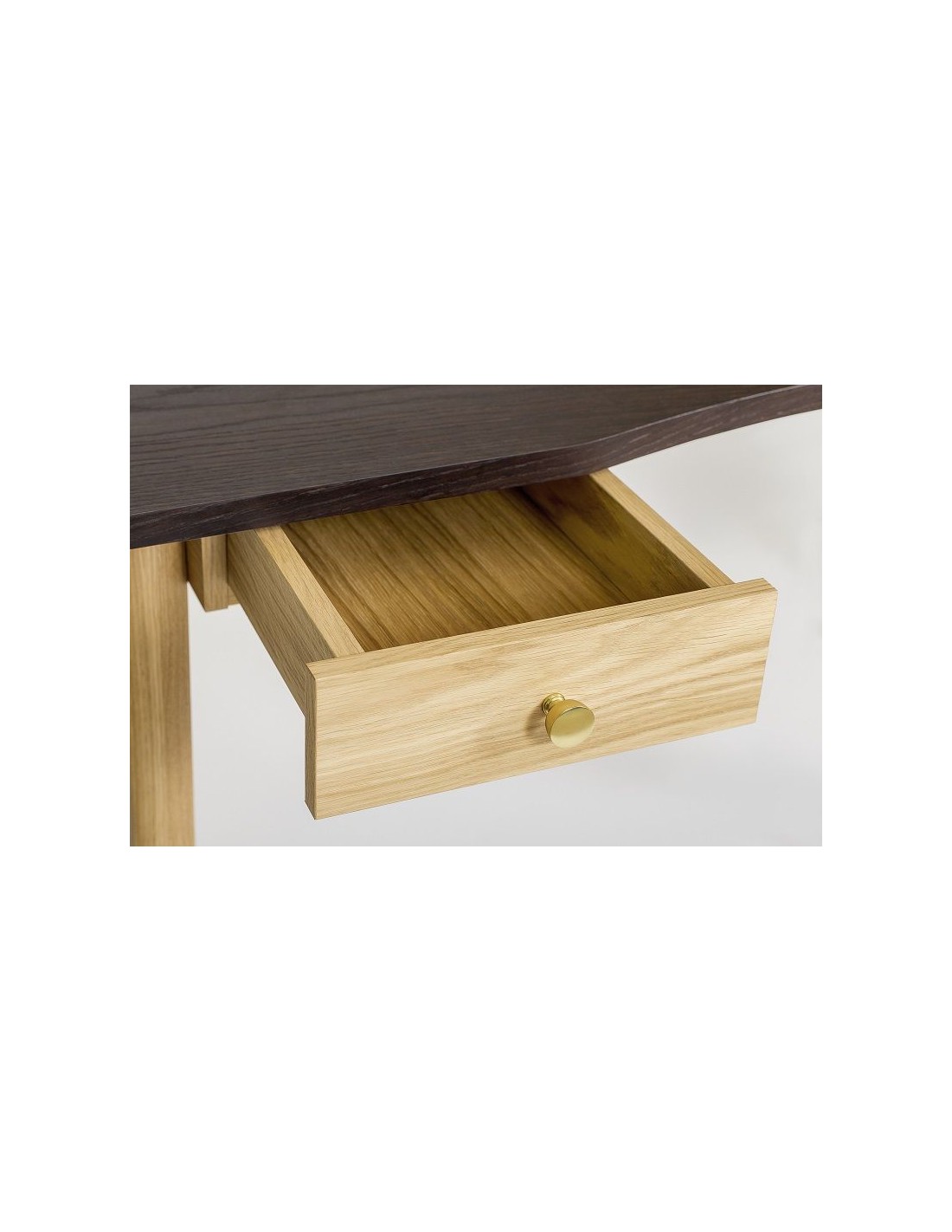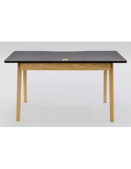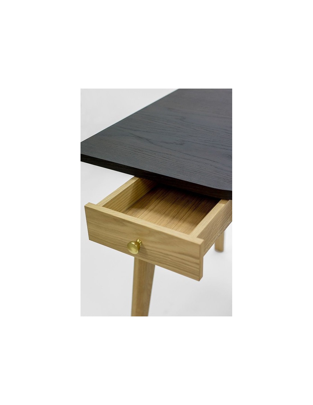 Skrivebord i et retro, men alligevel meget moderne design. Skrivebordet er udført i massiv eg og egefinér. Skrivebordet kommer med 2 skuffer og et kabelhul.