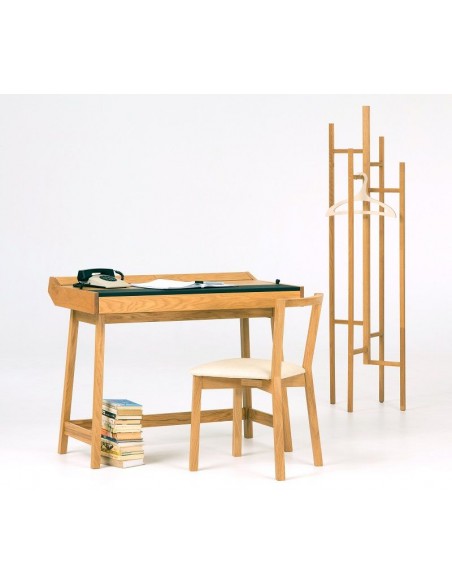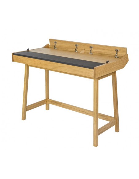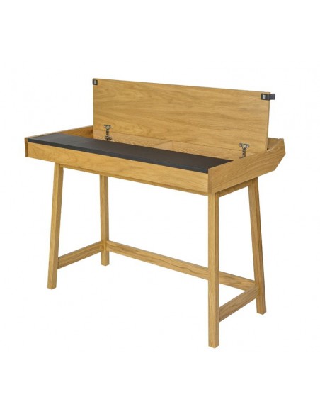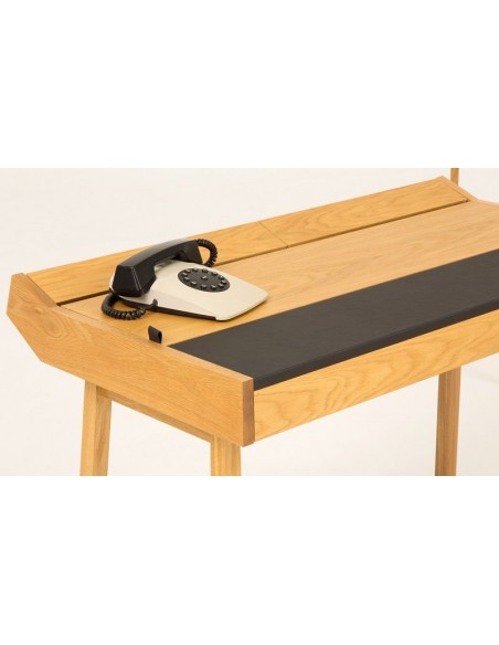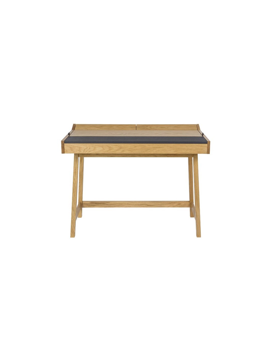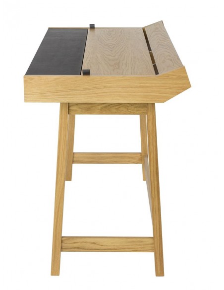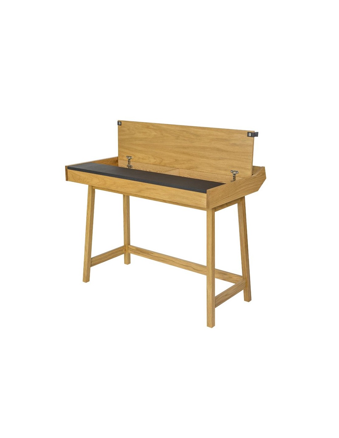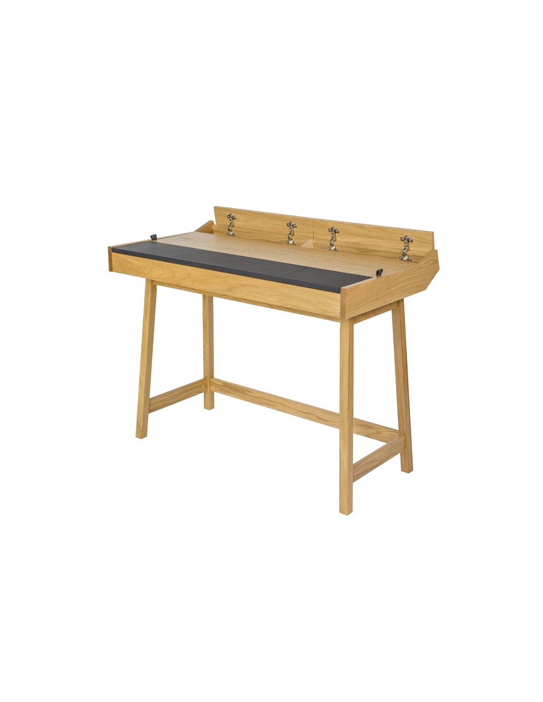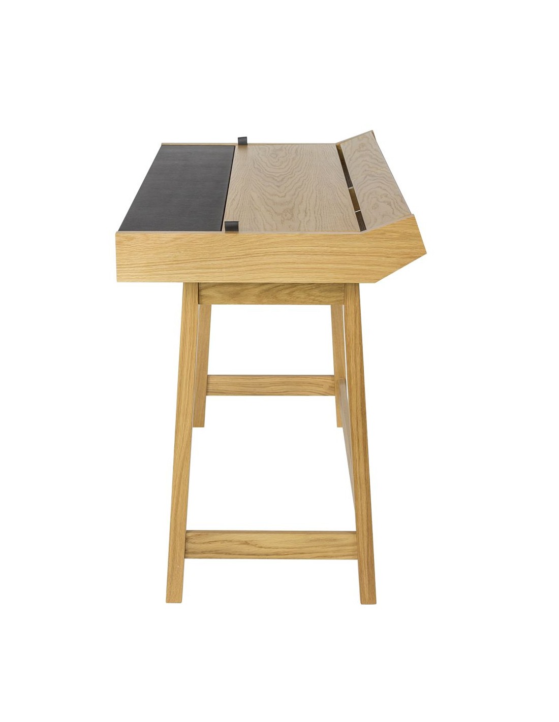 Skrivebord fra Woodman, udført i et moderne design. Skrivebordet er fremstillet i egetræ og finér og kommer med opbevaringsrum.