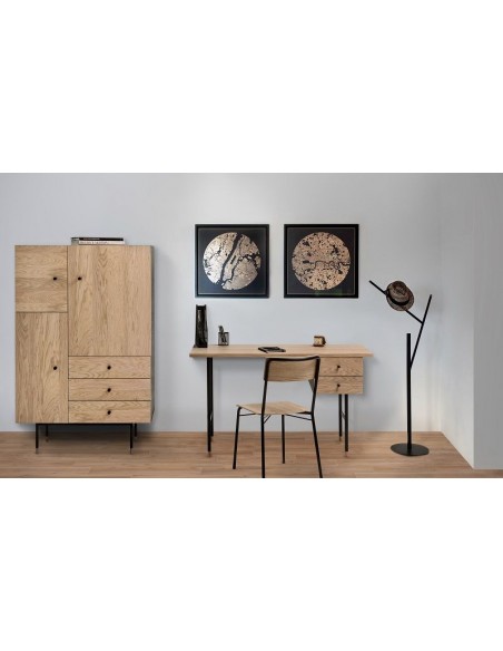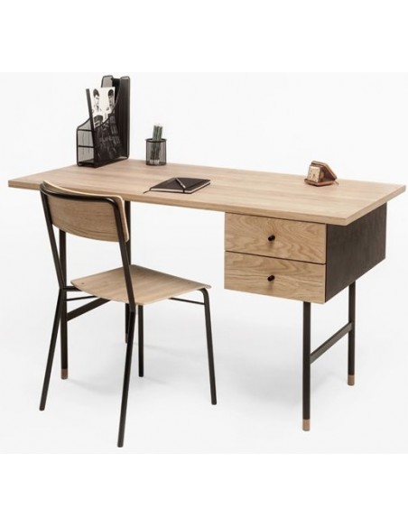 Skrivebord fra Woodman, udført i et moderne design. Skrivebordet er fremstillet i metal, egetræ og finér og kommer med 2 skuffer for bedre anvendelse.