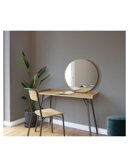 Skrivebord fra Woodman, udført i et moderne design. Skrivebordet er fremstillet i metal og egetræsfinér og kommer med spejl, således det også kan anvendes som sminkebord.