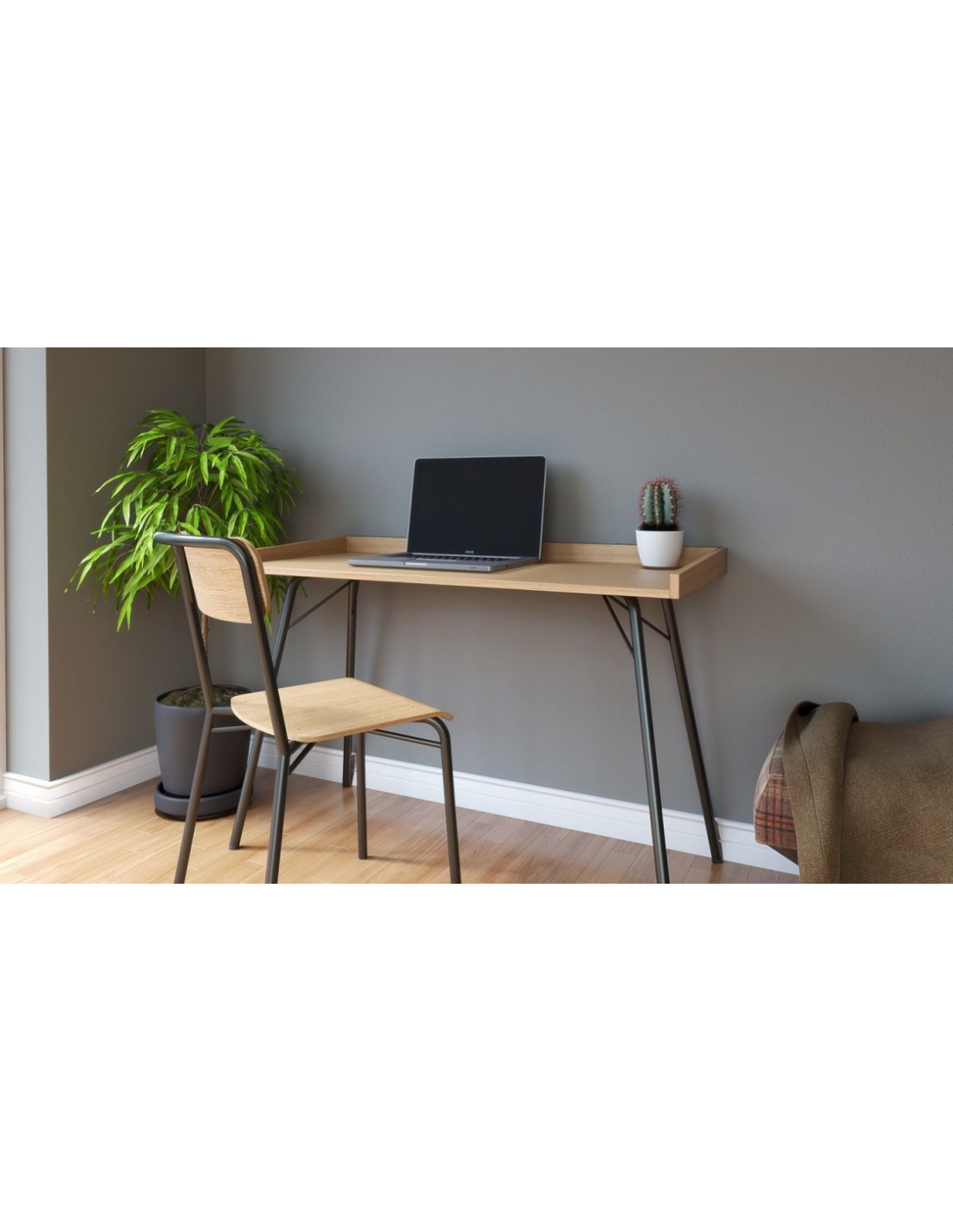 Skrivebord fra Woodman, udført i et moderne design. Skrivebordet er fremstillet i metal og finér.