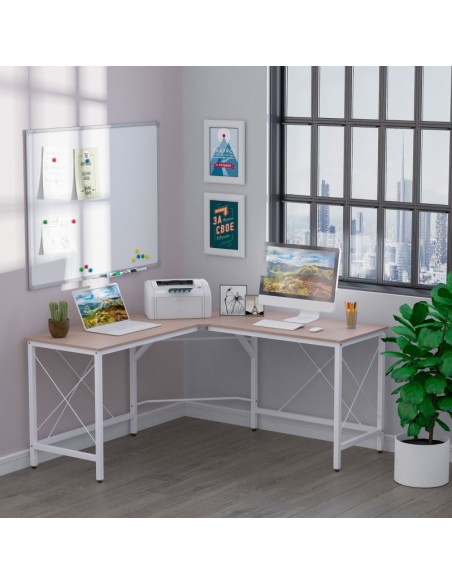 Hjørneskrivebord i metal og melamin 150 x 150 cm - Hvid/Natur