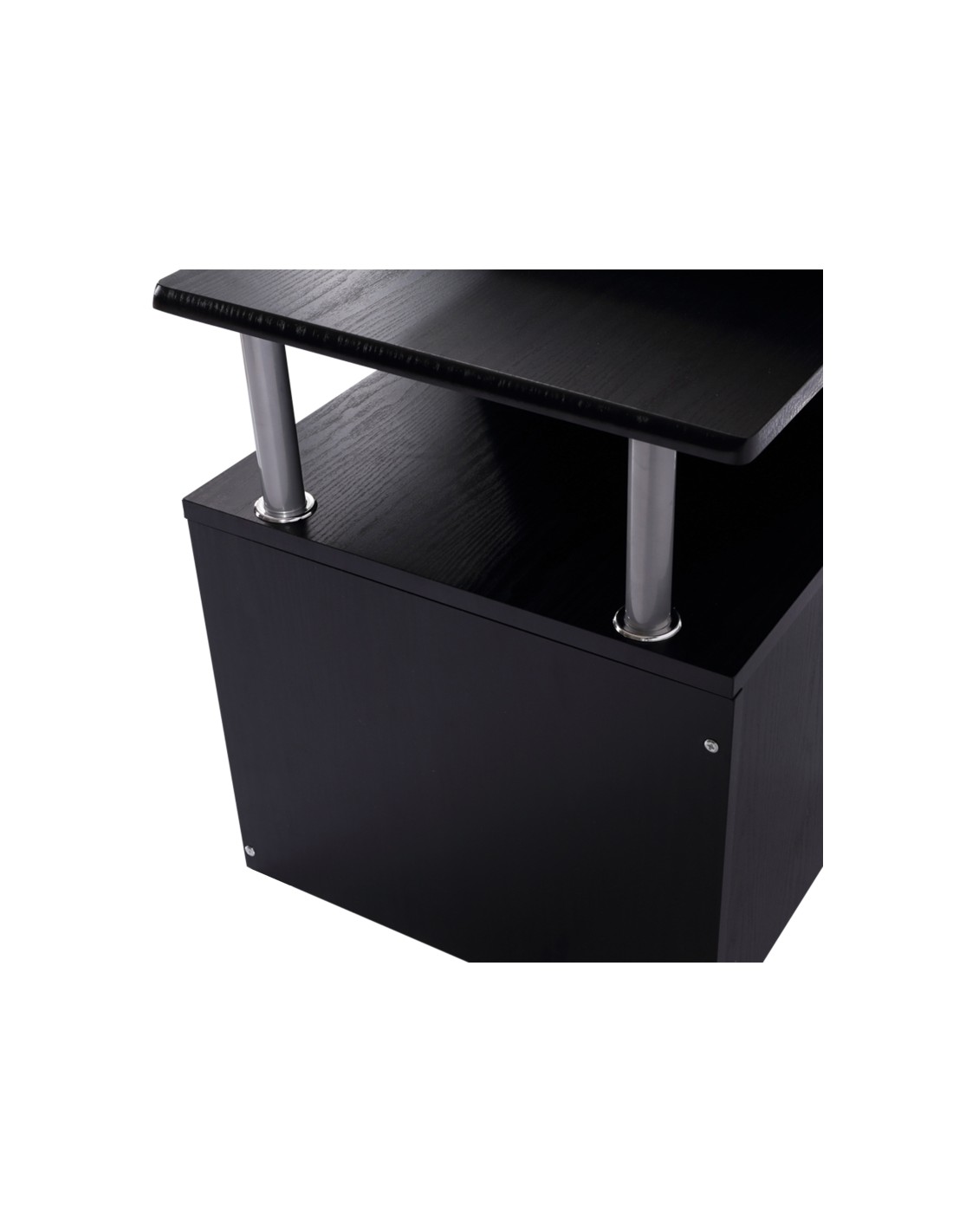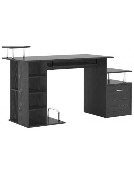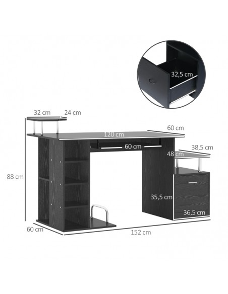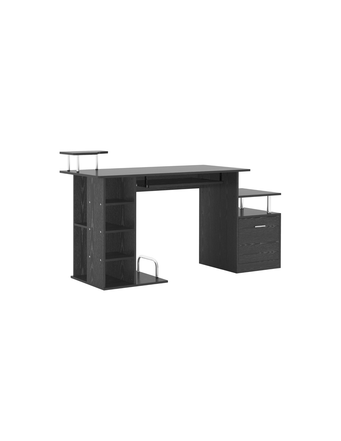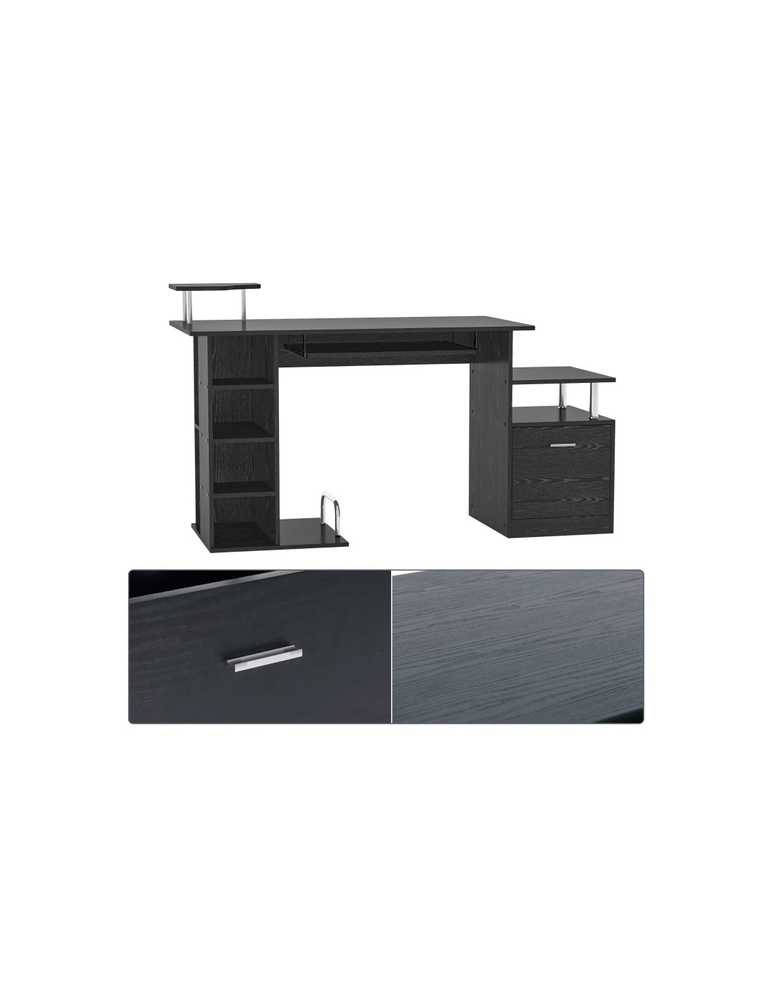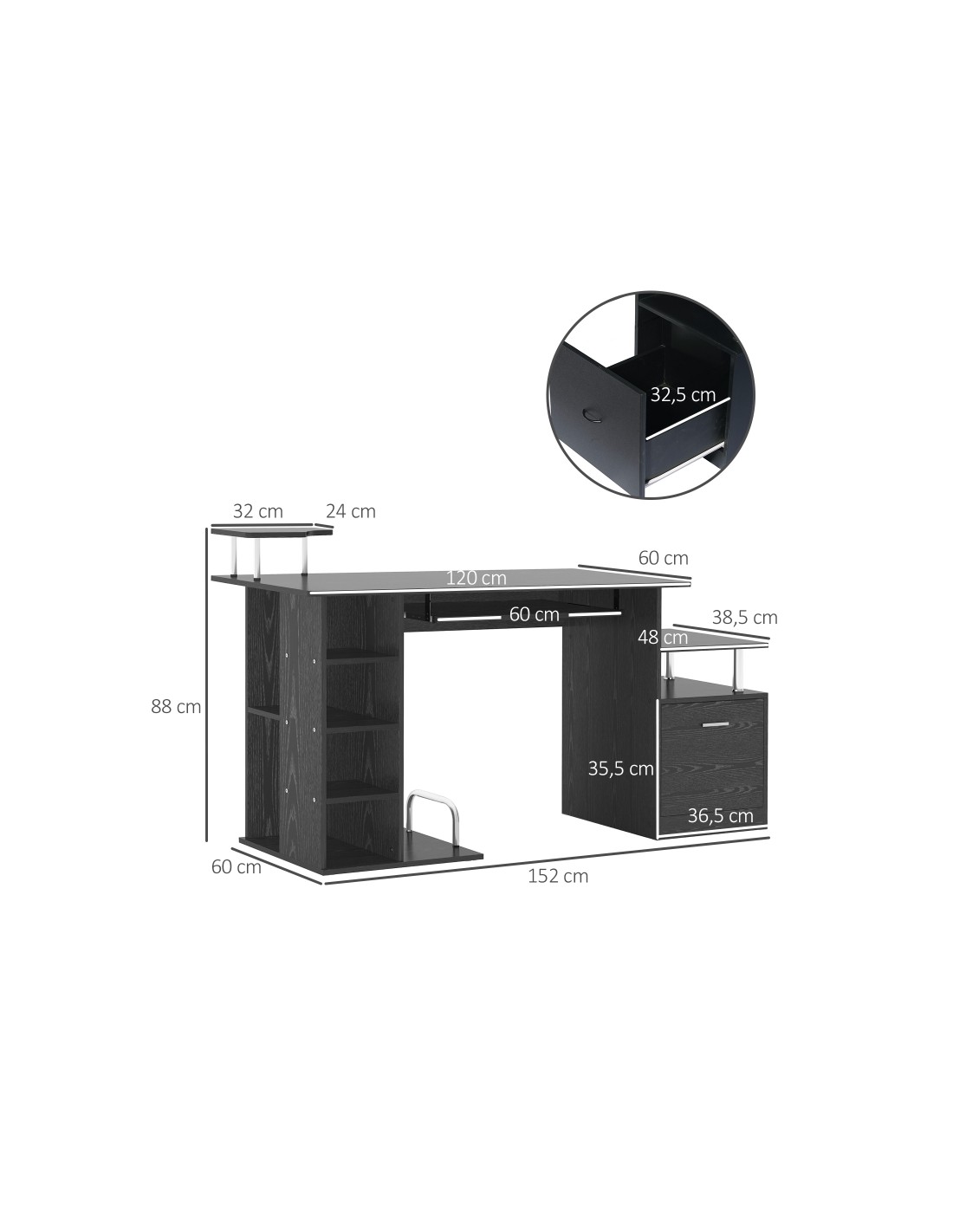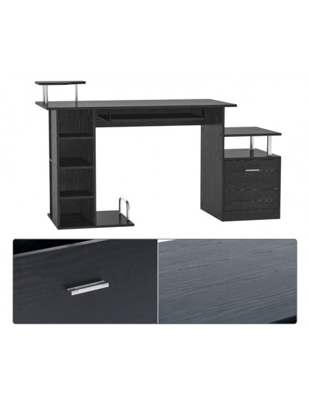 Skrivebord udført i et design af mørk nøddefarvet mdf og møbelplade. Skrivebordet måler 72 - 88 cm i højden og 152 x 60 cm i bredde og dybde.