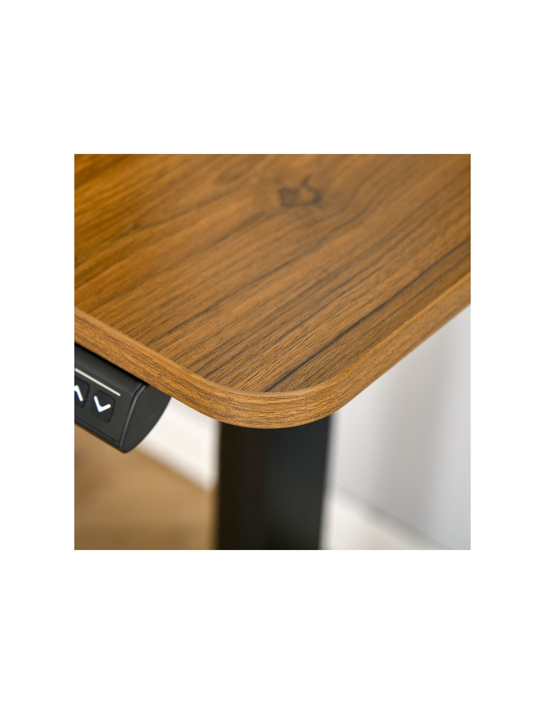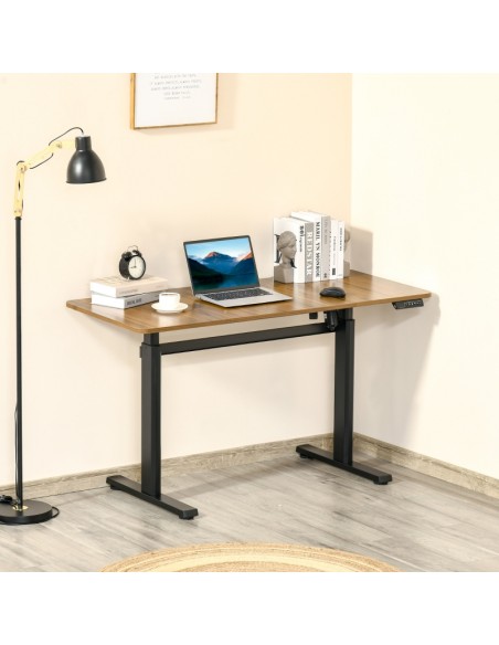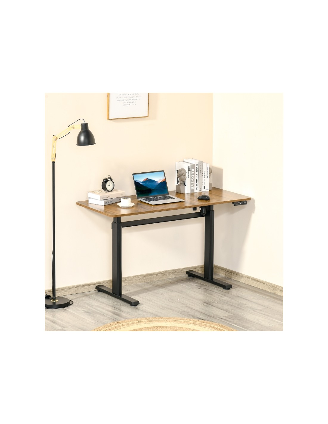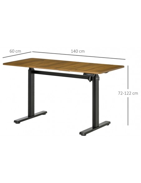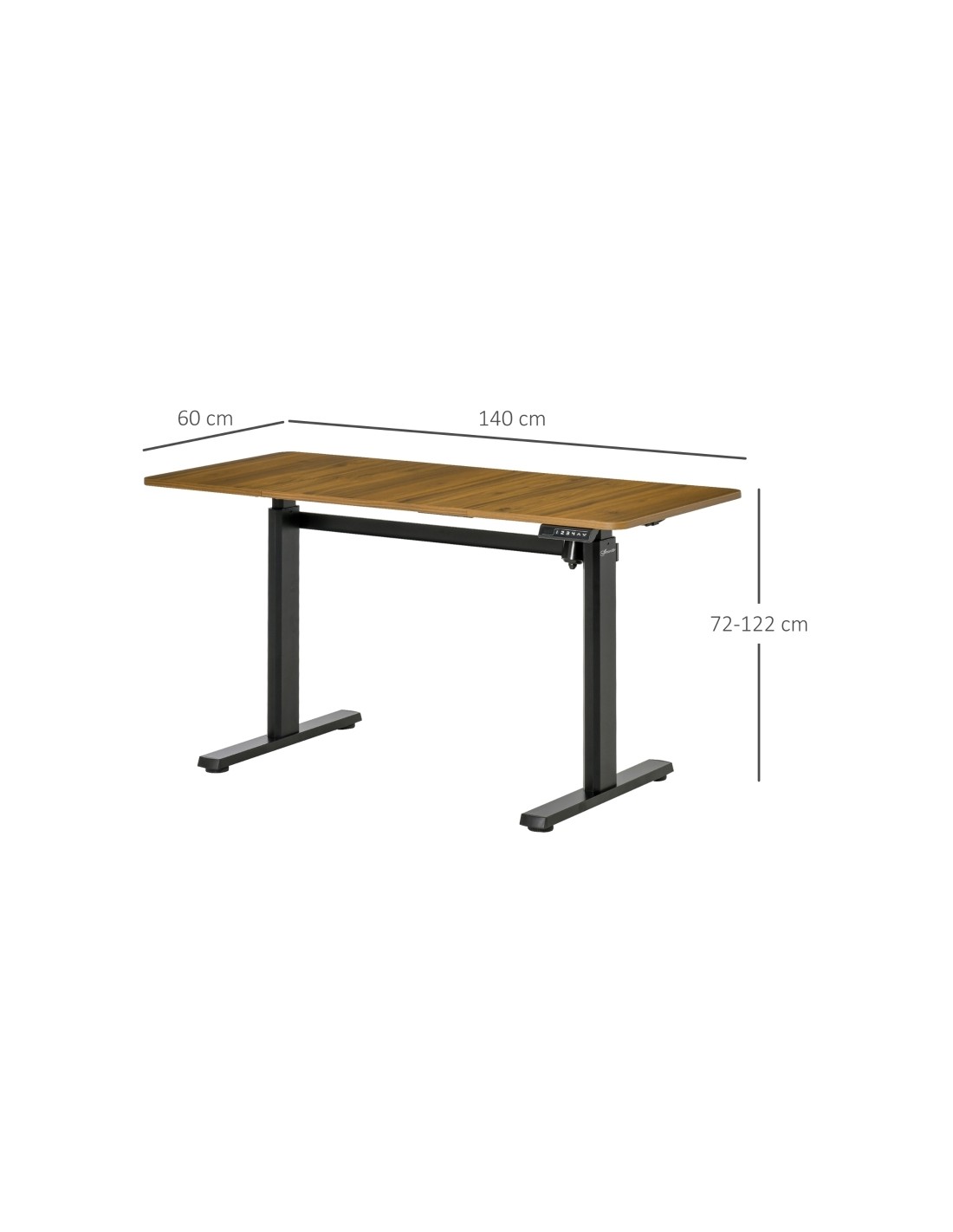 Hæve-/Sænke skrivebord i aluminium og MDF 140 x 60 cm - Sort/Brun natur