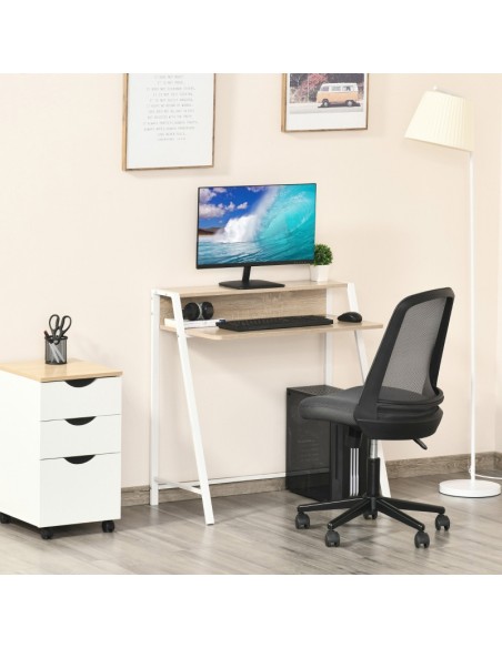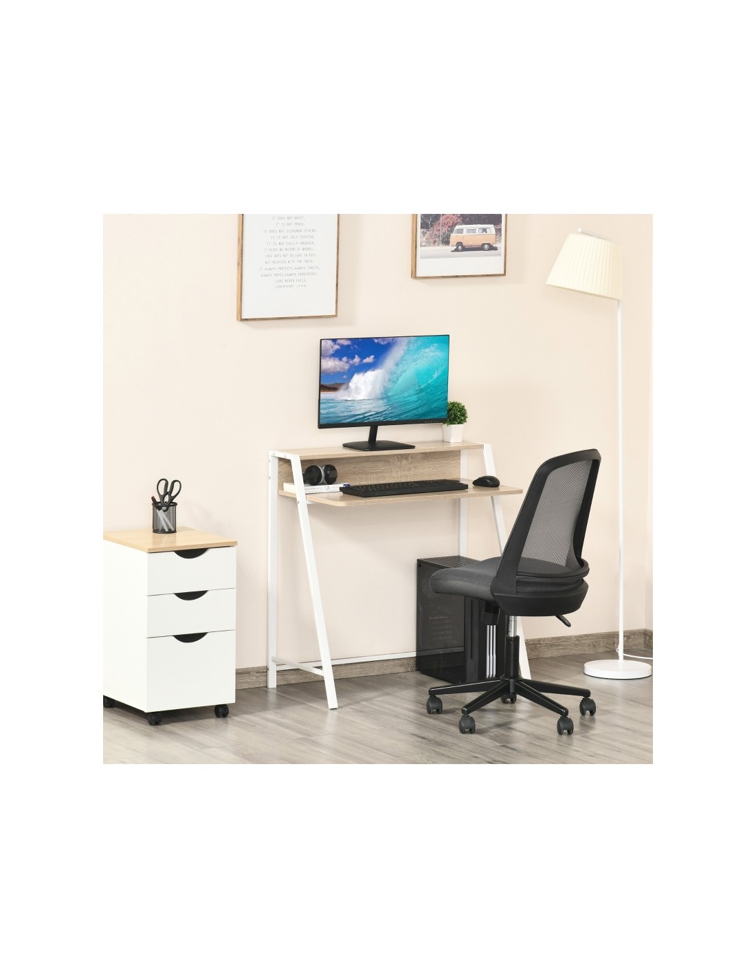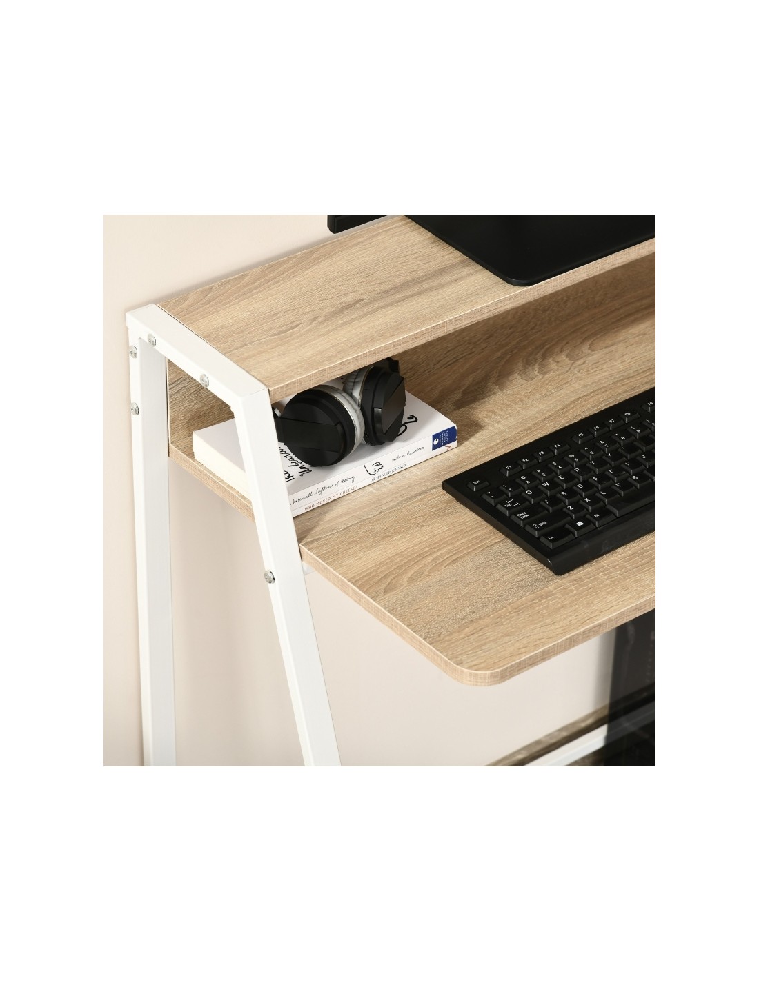 Skrivebord i metal og MDF H85 x B84 cm - Hvid/Natur
