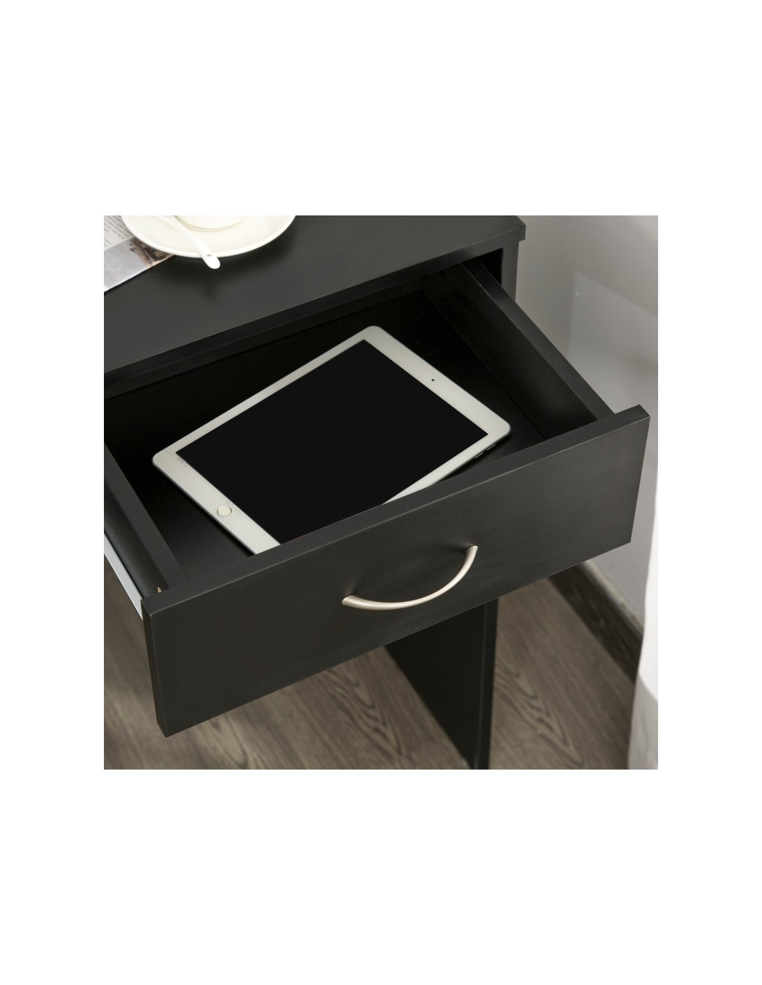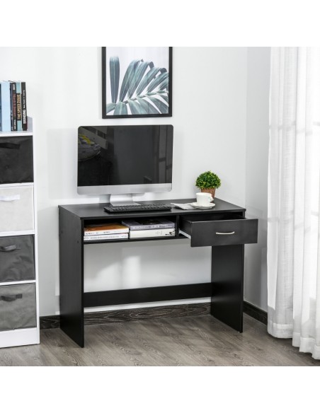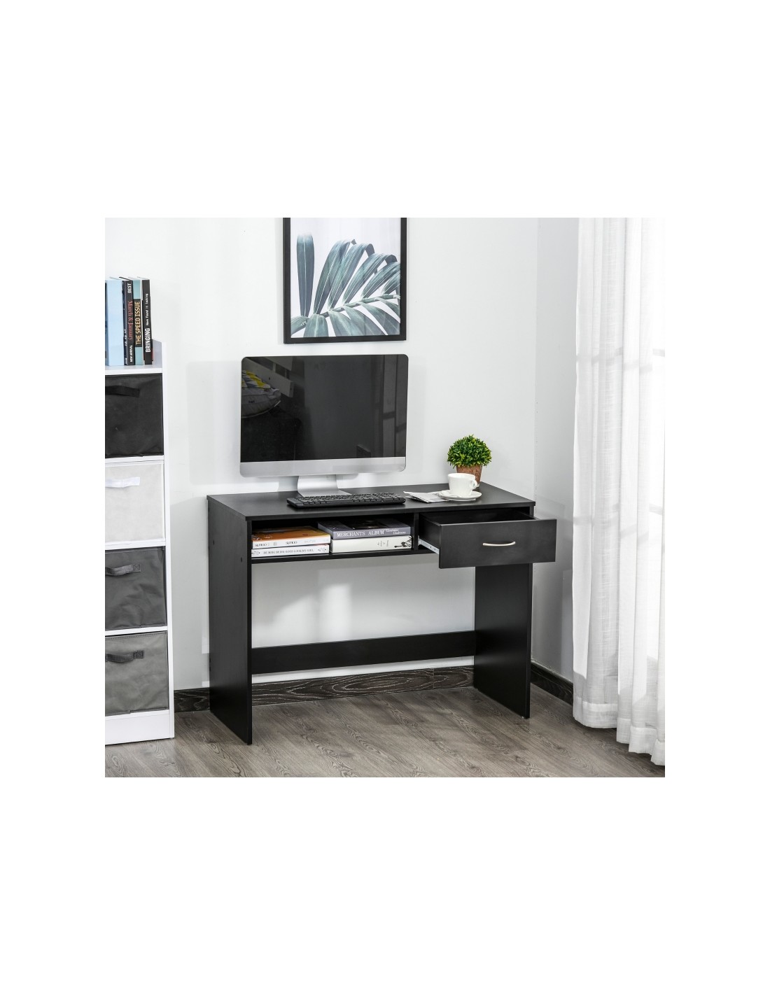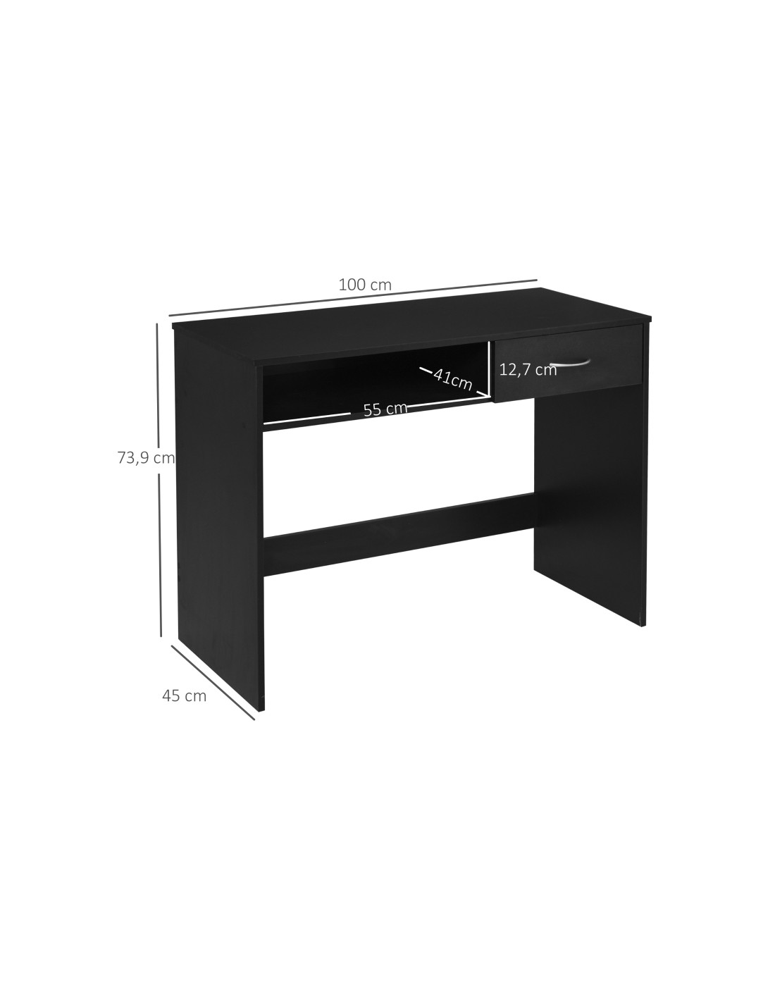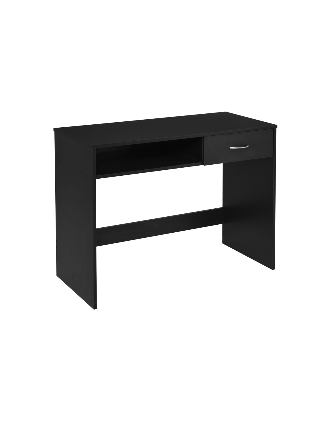 Skrivebord udført i et design af sort møbelplade. Skrivebordet måler 73,9 cm i højden og 100 x 45 cm i bredde og dybde. Skrivebordet indeholder 1 åbent hylderum samt 1 skuffe.