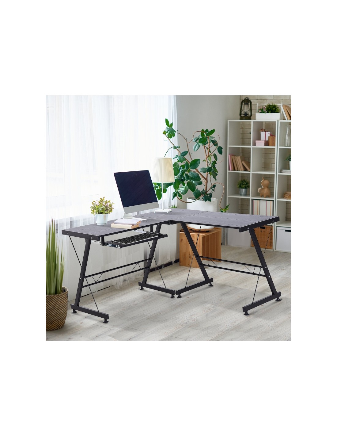 Hjørneskrivebord i metal og MDF 130 x 130 cm - Sort