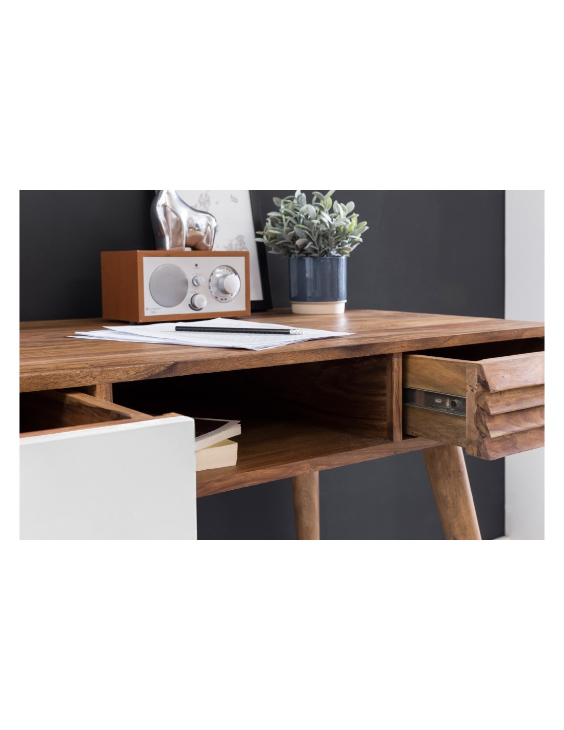 Skrivebord i sheeshamtræ 117 x 60 cm - Brun/Hvid