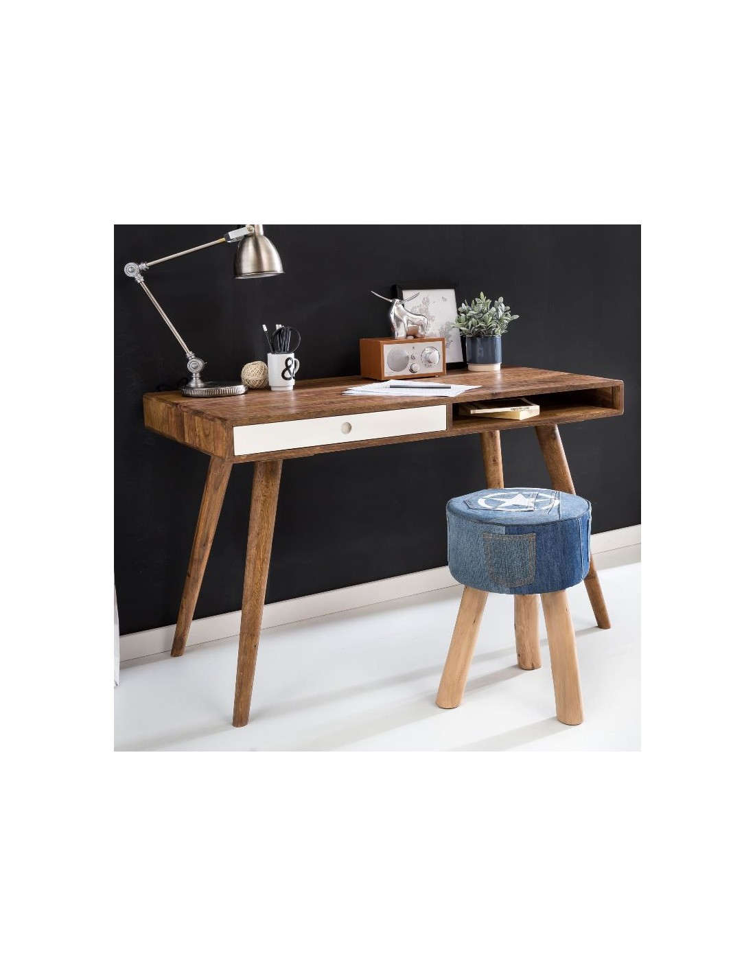 Skrivebord i sheeshamtræ 117 x 60 cm - Brun/Hvid