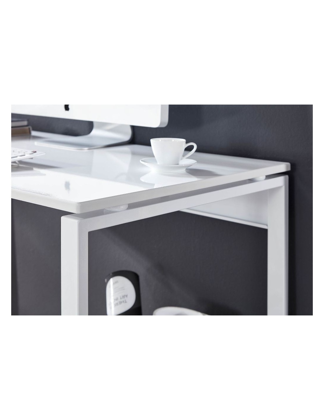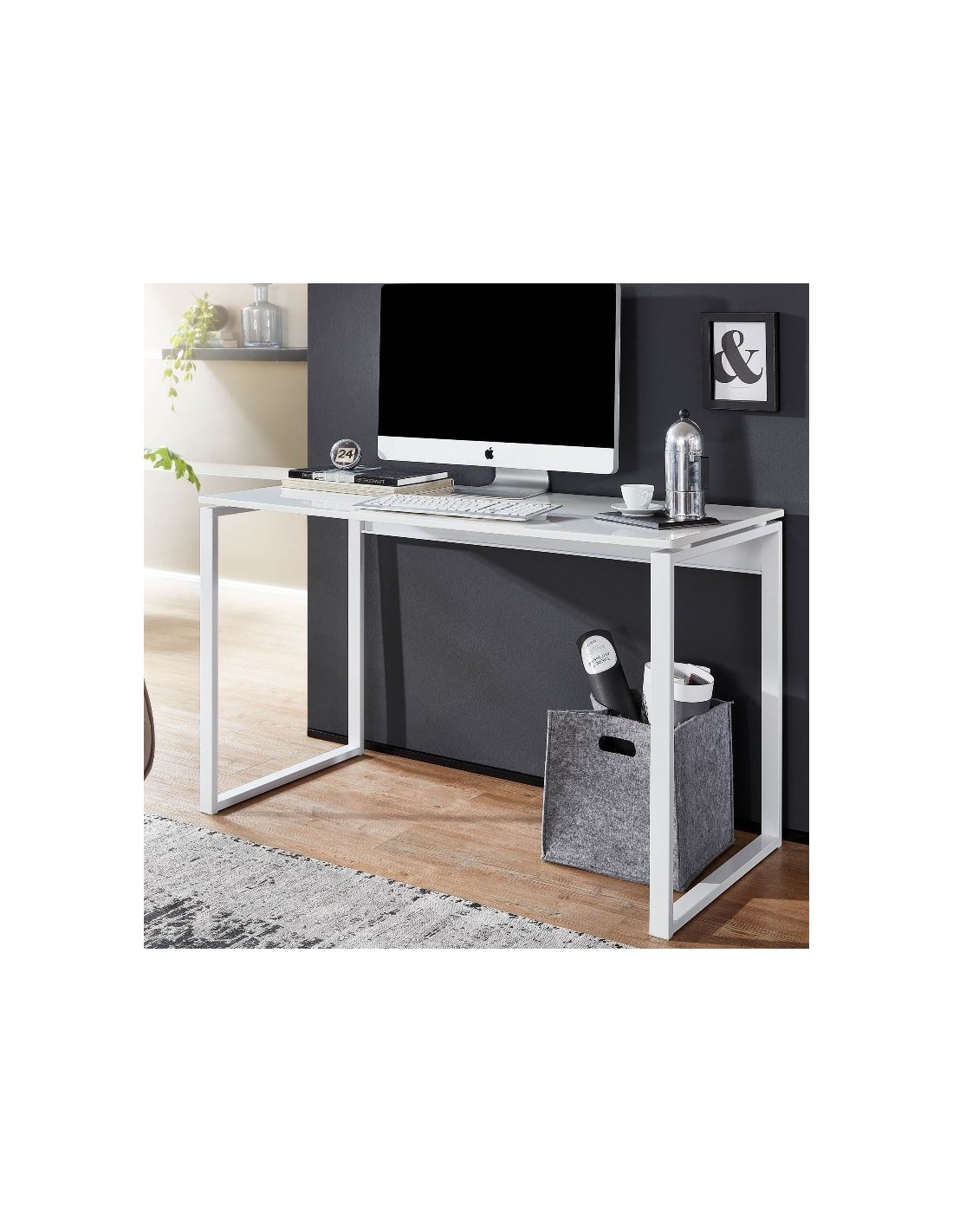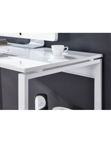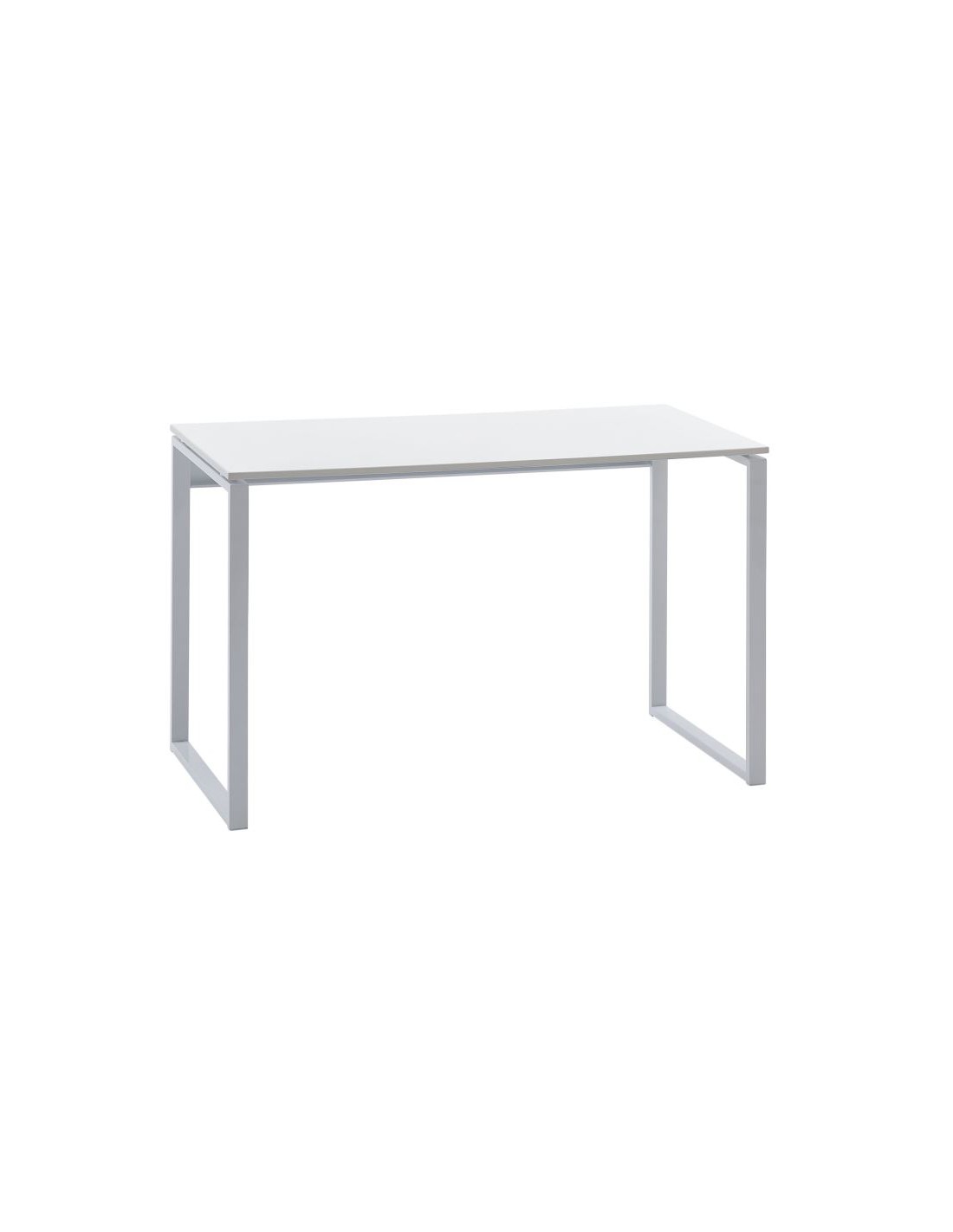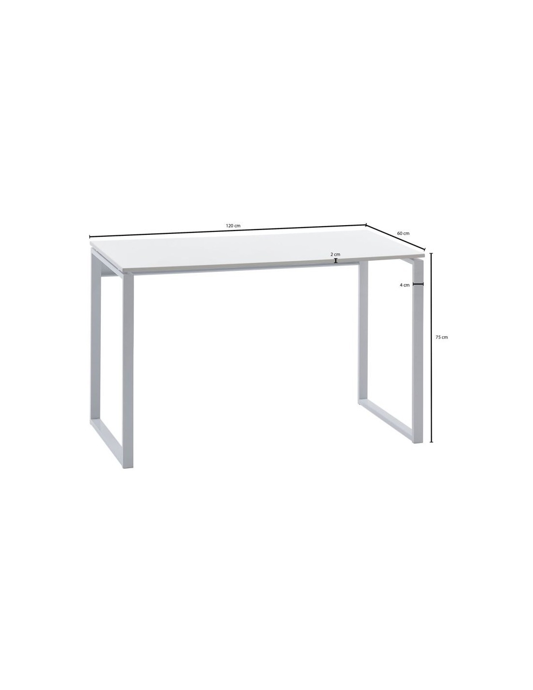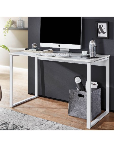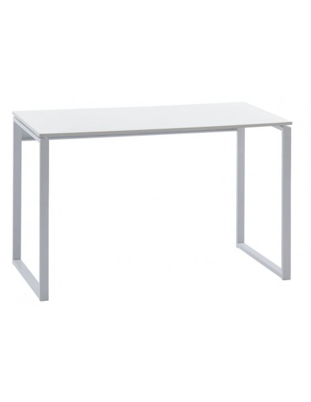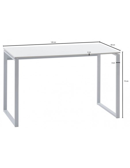 Skrivebord fremstillet i et design af hvidlakeret metal og hvid mdf. Bordet måler 75 cm i højden og 120 x 60 cm i bredde og dybde.