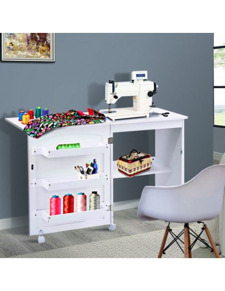 Symaskinebord eller computerbord i møbelplade 118,5 x 40 cm - Hvid