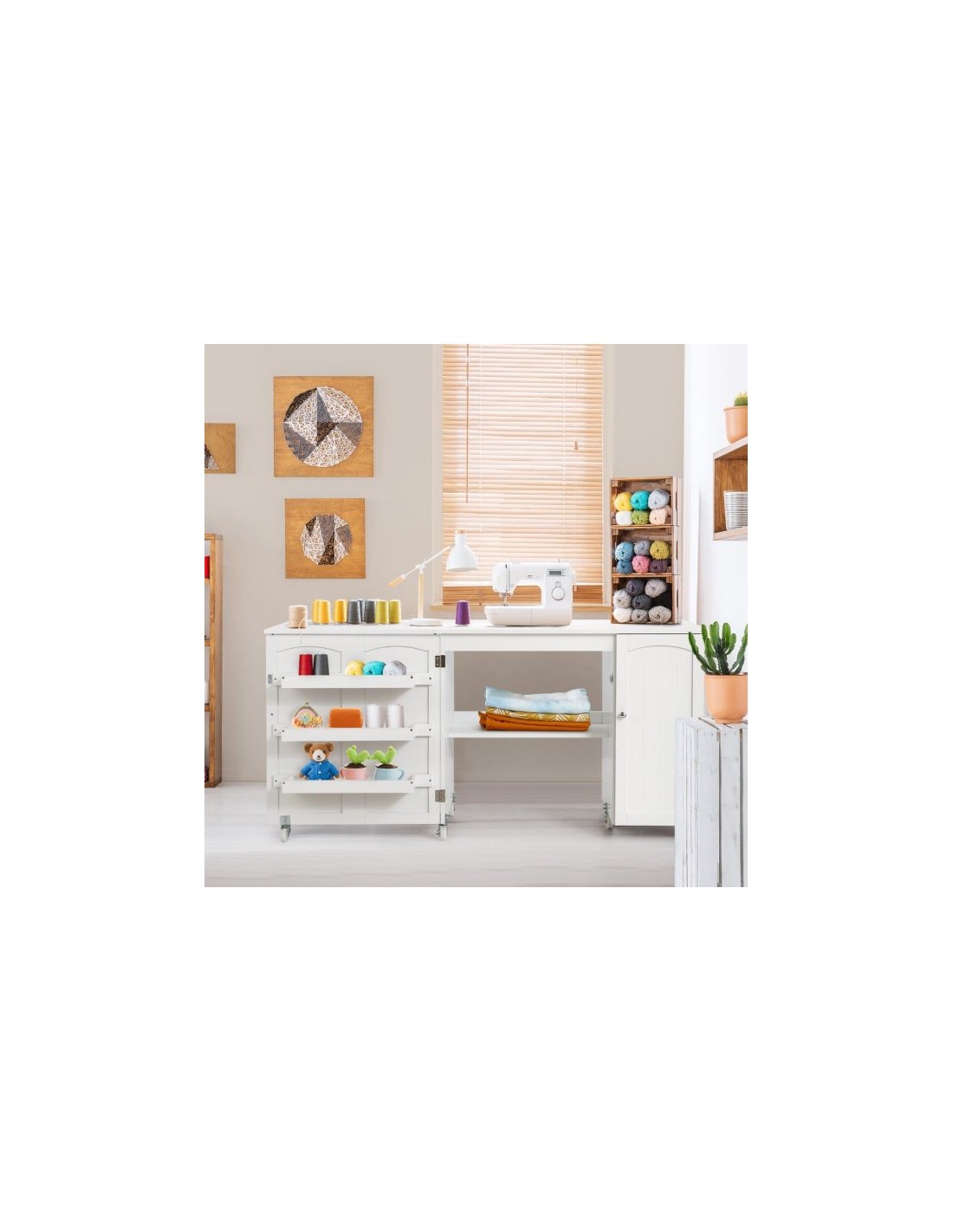Symaskinebord eller computerbord i møbelplade 98 - 158 cm - Hvid