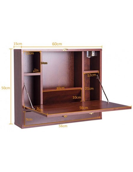 Væghængt skrivebord udført i et design af brun møbelplade. Skrivebordet måler 50 cm i højden og 60 cm i bredden.
