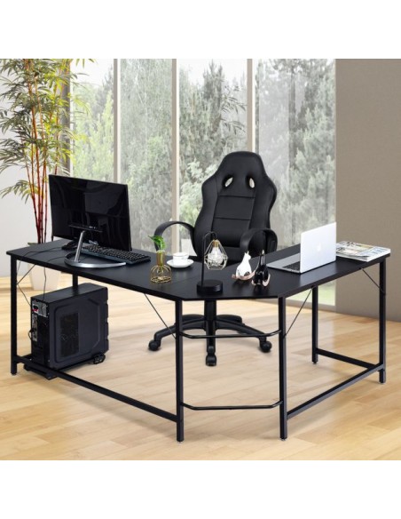 Hjørneskrivebord i metal og møbelplade 168 x 125 cm - Sort