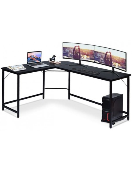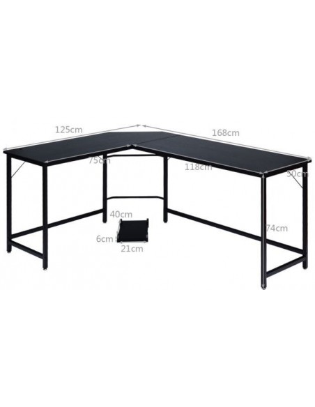 Hjørneskrivebord udført i et design af sortlakeret metal og møbelplade. Bordet måler 74 cm i højden og 168 x 125 cm i bredde og dybde. Bordplade dybden er 50 cm.