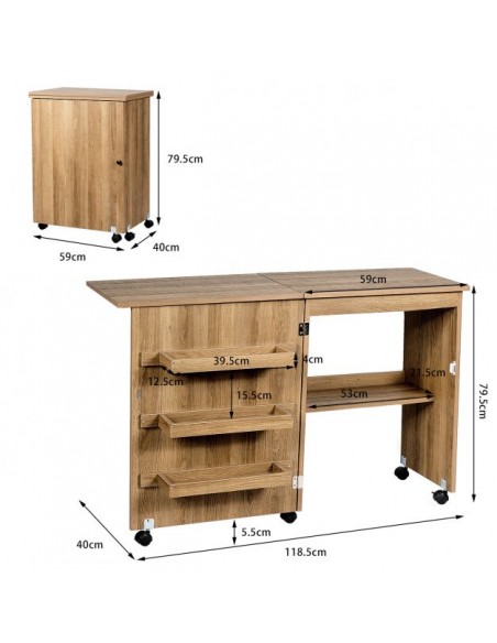 Symaskinebord eller computebord, udført i et design af mørk natur møbelplade. Bordet måler 79,5 cm i højden og 118,5 x 40 cm i bredde og dybde.