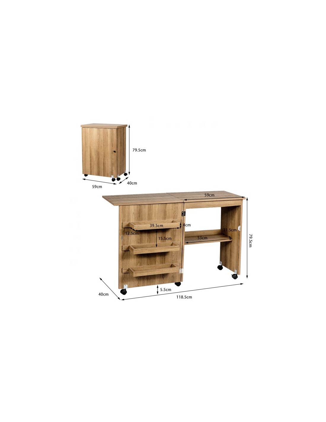 Symaskinebord eller computerbord i møbelplade 118,5 x 40 cm - Mørk natur