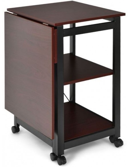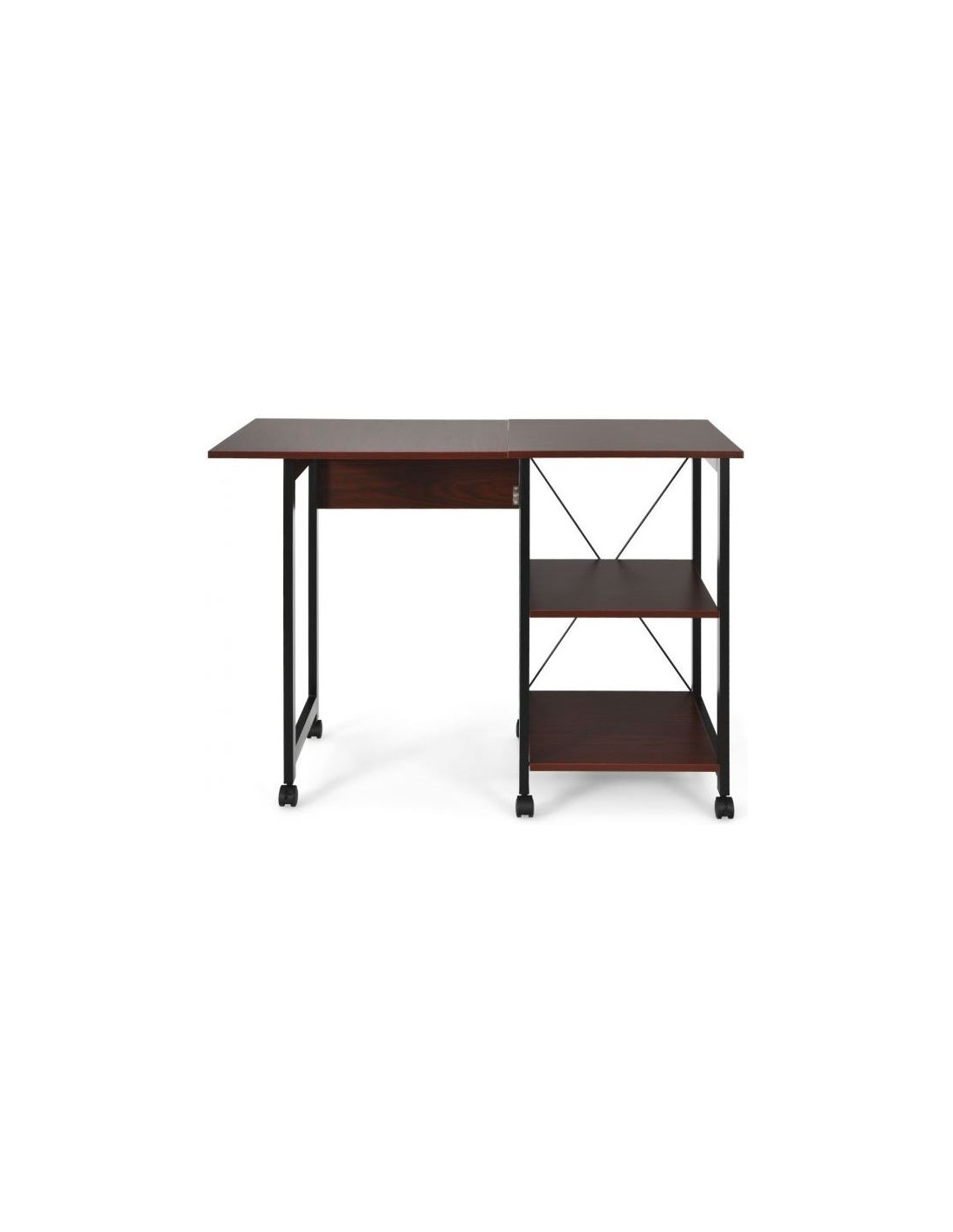 Skrivebord udført i et design af sortlakeret metal og brun mdf. Bordet måler 77 cm i højden og 49 - 107,5 x 54 cm i bredde og dybde.